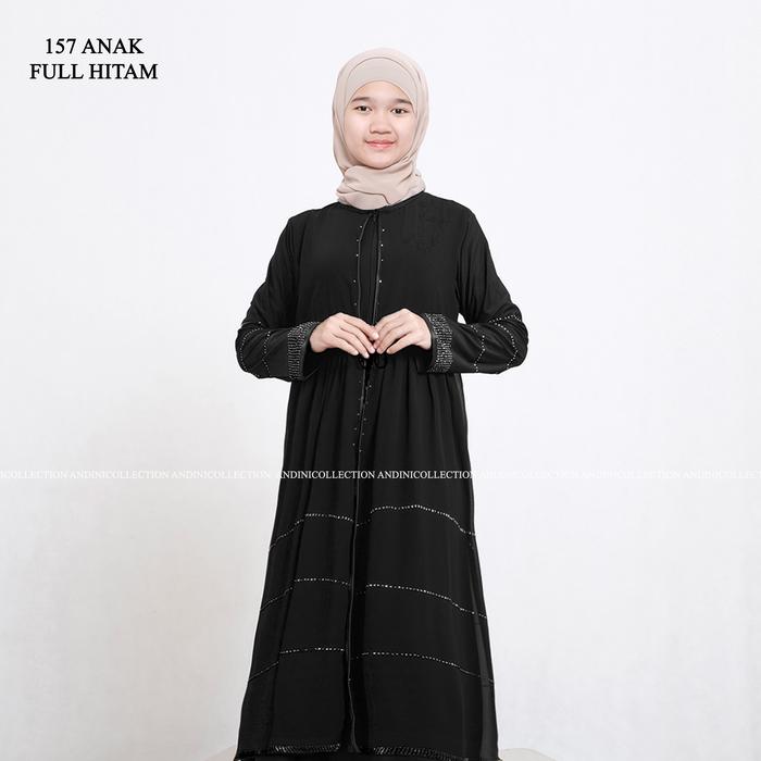 DP 0 [ANAK TANGGUNG] ABAYA TURKEY 157 AMARTA HITAM PUTIH MUSLIM POLOS PAYET MEWAH HITAM M