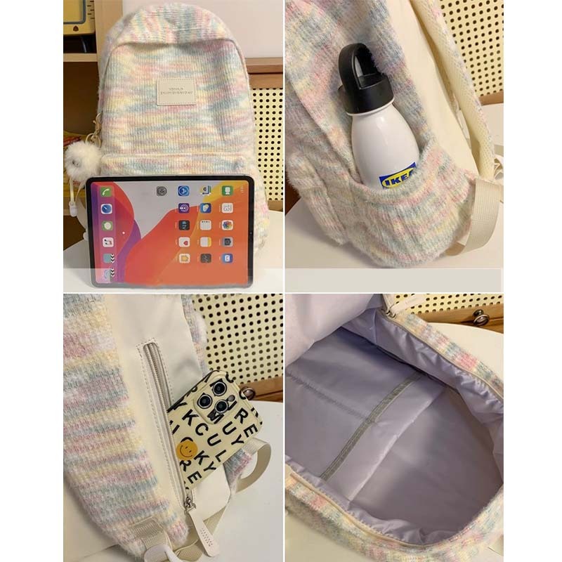 【SHEBAG】Pelangi Mewah Tas Sekolah Rajutan Untuk Wanita Gaya Jepang Ins Backpack Tas Bahu Mini Ransel Siswa Fashion Bag Kuliah Import Backpack Serbaguna Fashion Pelajar【✅Ready】