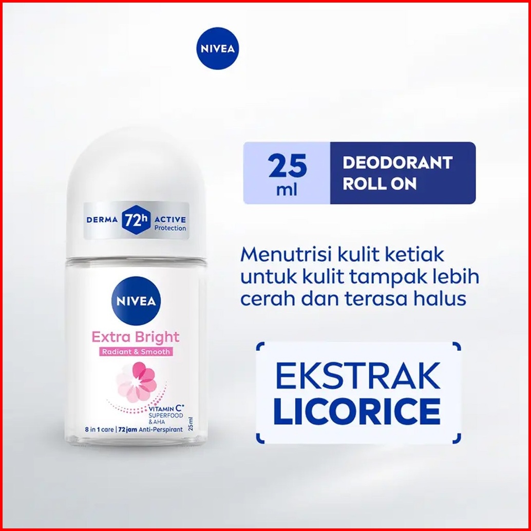 Nivea - Deodorant Roll On Extra Bright Radiant Smooth 25 50 Ml - Deodoran Cerah Halus Ketiak