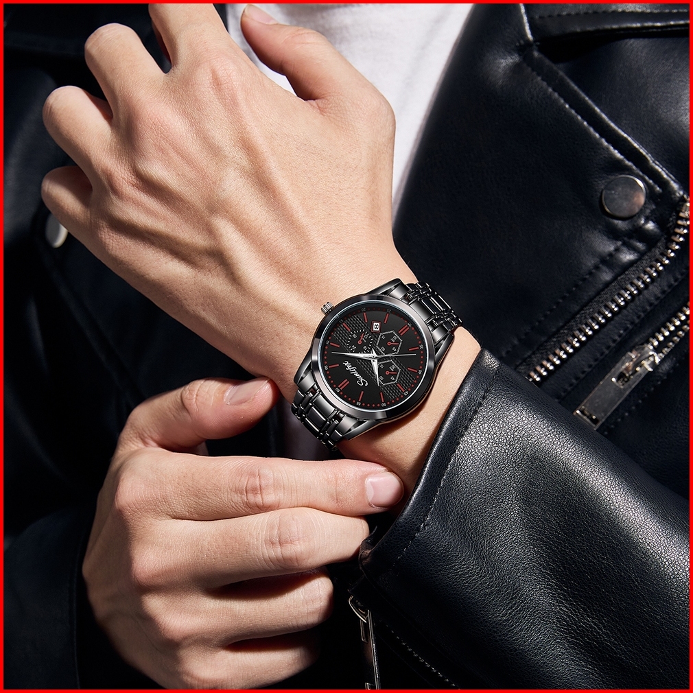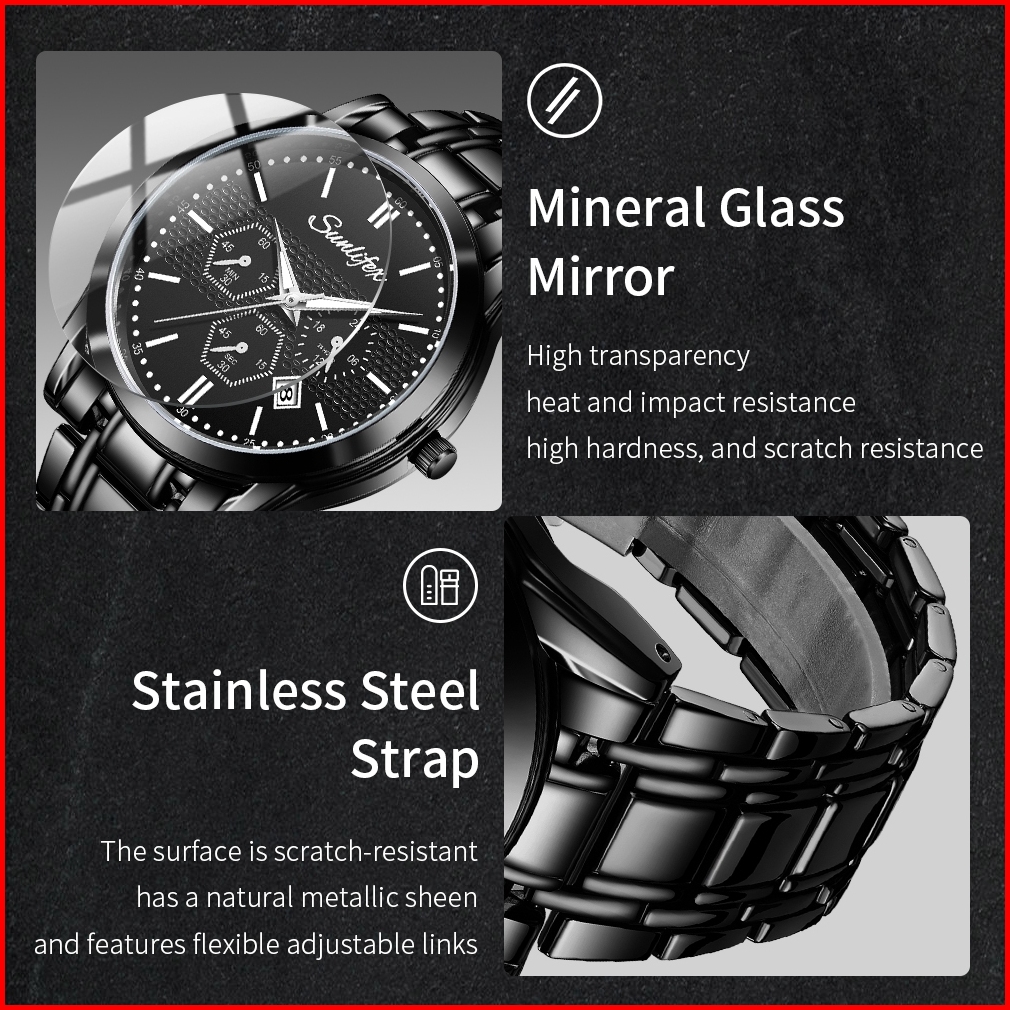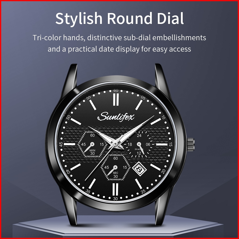 Sunlifex Jam Tangan Pria 9035 Analog Kalender Santai Tali Stainless Steel Jam Tangan Cowok