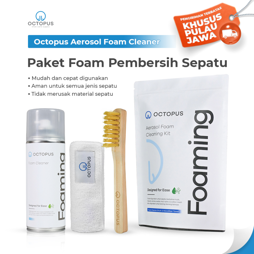 Octopus Paket Instant Foam Cleaner sepatu , tas, interior mobil serbaguna lengkap sikat & Lap