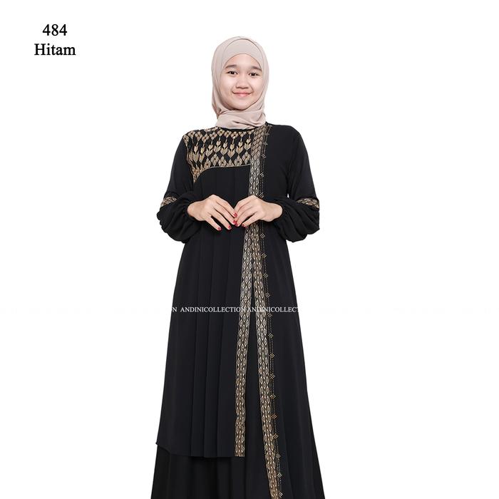 DP 0 [NEW ANAK TANGGUNG] ABAYA TURKEY 484 GAMIS ANAK HITAM MUSLIM BORDIR DAN PAYET MEWAH HITAM XL