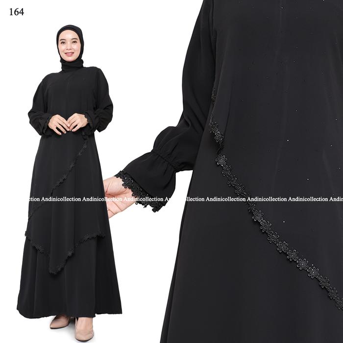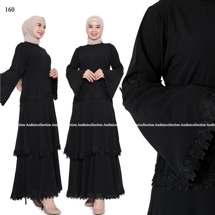 DP 0 ABAYA JETBLACK HITAM PREMIUM GAMIS SYARI MUSLIMAH REMAJA UNTUK UMROH KAJIAN LEBARAN KOMBINASI PAYET ELEGAN 160 161 164 160 M