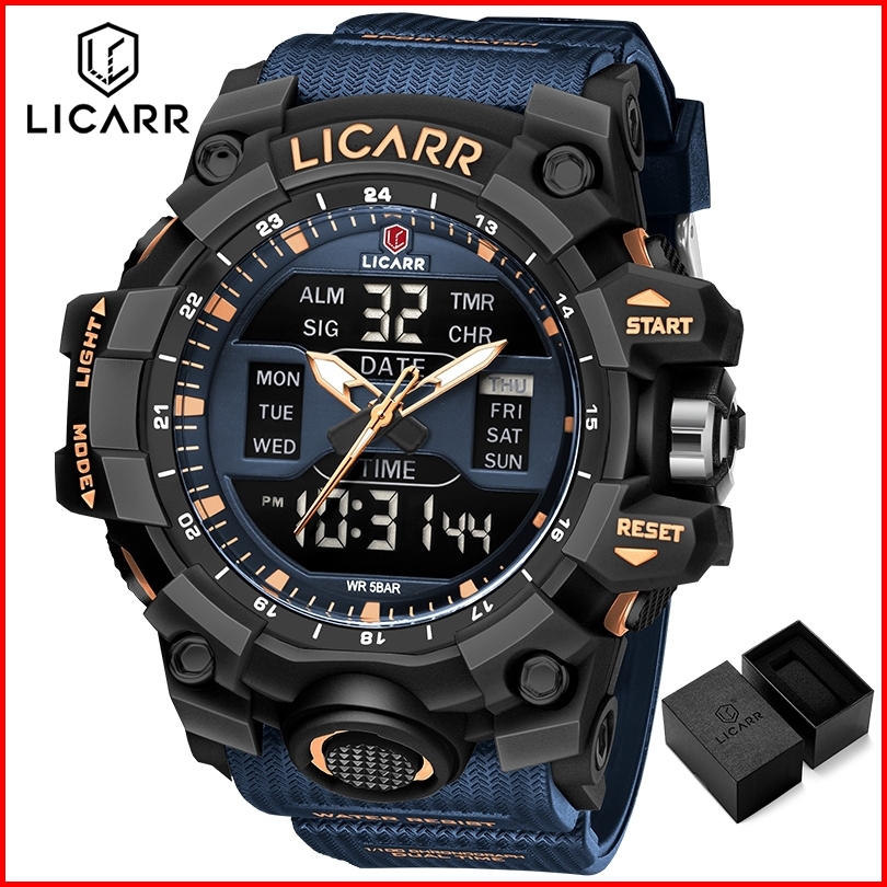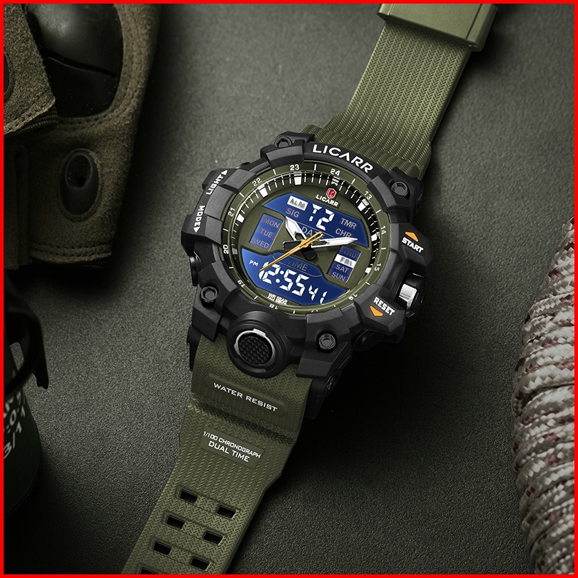 Licarr Jam Tangan Pria Olahraga Analog Digital Santai Kuarsa Anti Air Silikon Multifungsi Jam Tangan Cowok Original Fash
