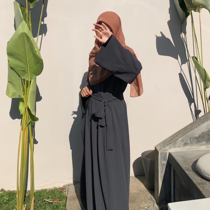 DP 0 BASIC ABAYA TURKEY POLOS BY SUNDARA GAMIS WOLFIS POLOS SIMPLE DRESS MUSLIM WANITA DARK GREY S