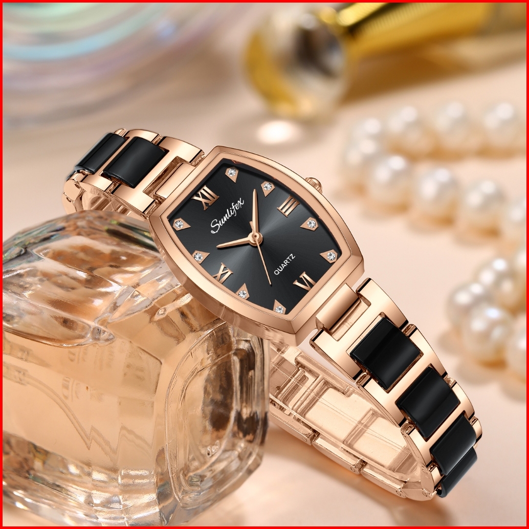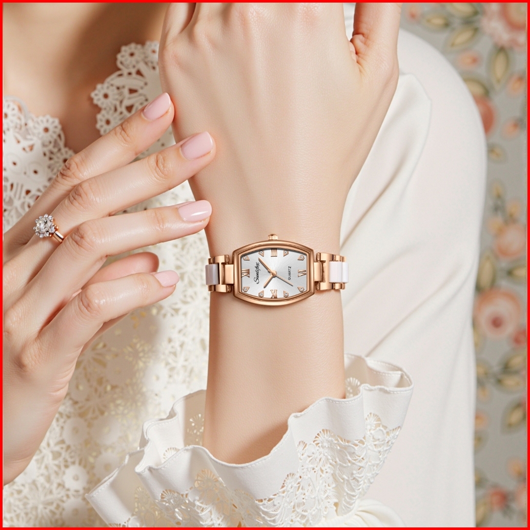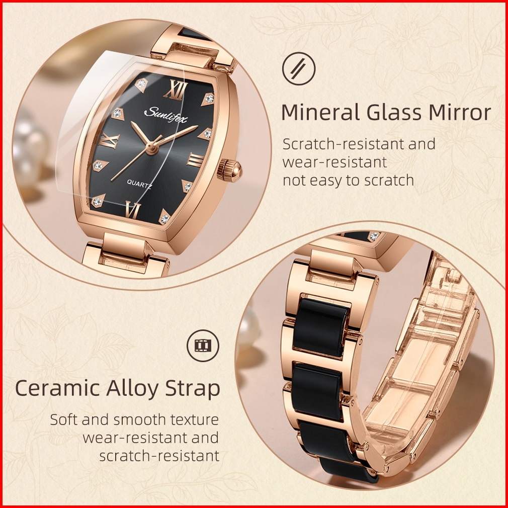 Sunlifex Jam Tangan Wanita Anti Air Kuarsa Elegan Korea Tali Keramik Kasual Jam Tangan Cewek Original 8016