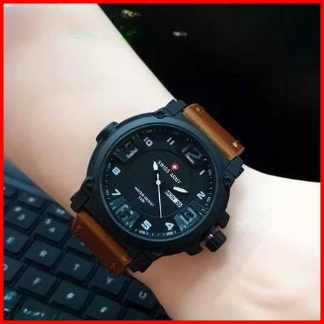Jam Tangan Pria Analog Tali Kulit Free Box Baterai Cadangan -