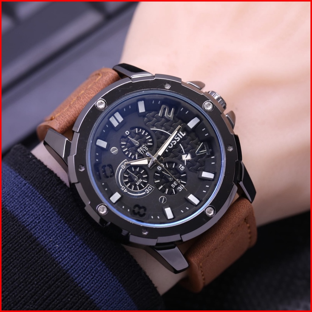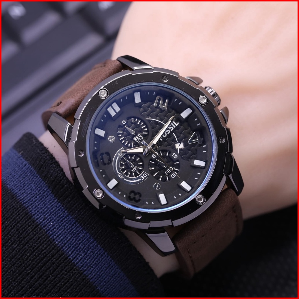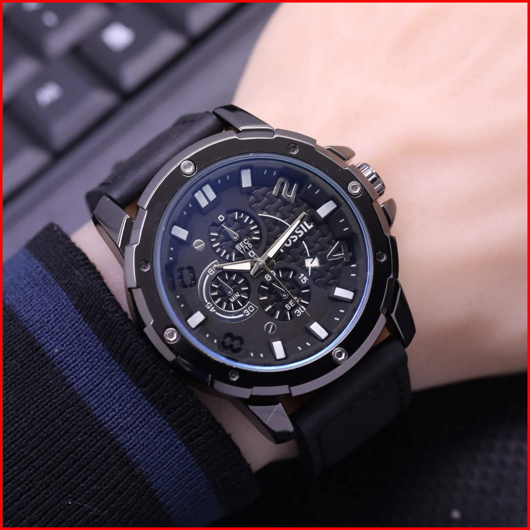 Terlaris Jam Tangan Pria F019l Tanggal Aktif Crono Variasi Tali Kulit Free Box Batrai