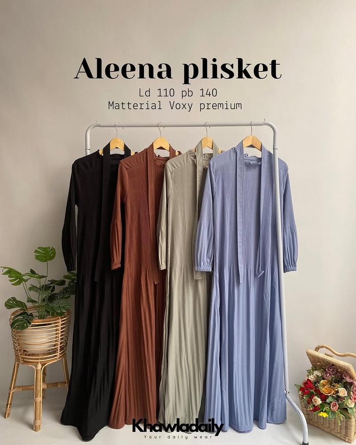 DP 0 ALEENA DRESS GAMIS PLISKET ALLSIZE VOXY PREMIUM POLOS SIMPEL PAKAIAN MUSLIM REMAJA WANITA GREY SAGE