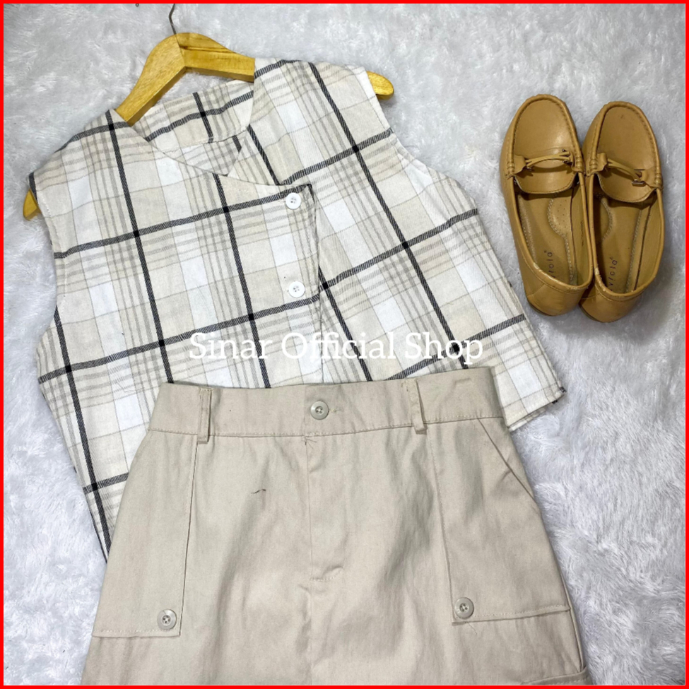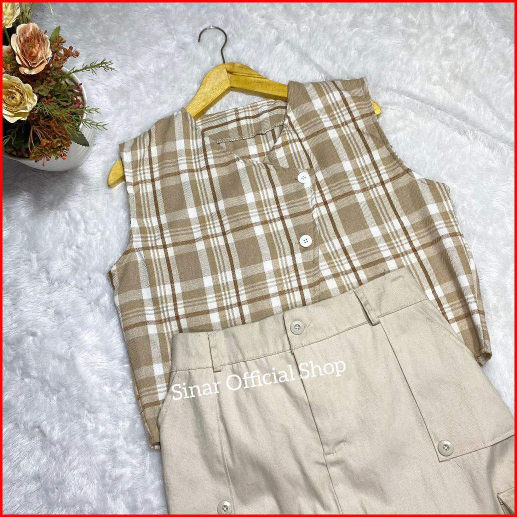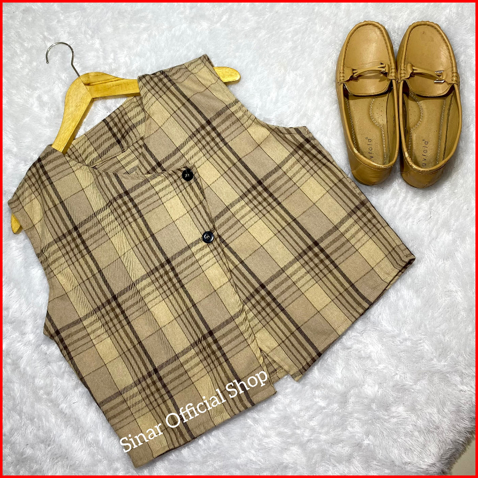 Nuna Vest Basic Wanita Outer Kotak Kotak Vest Flanel Atasan Wanita Crop Nuna Vest Tanpa Inner