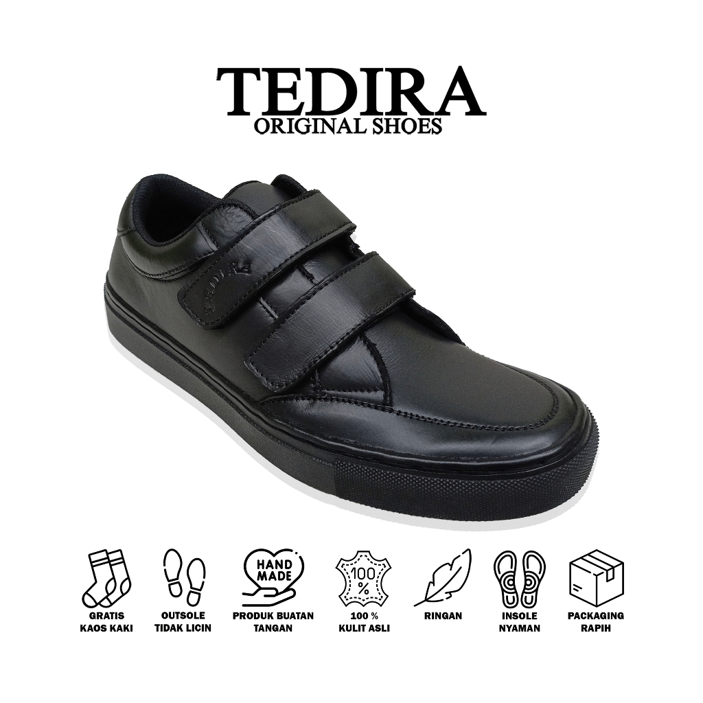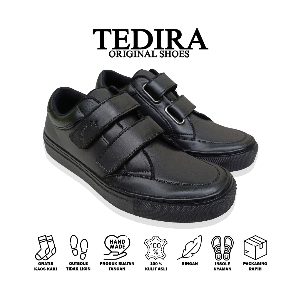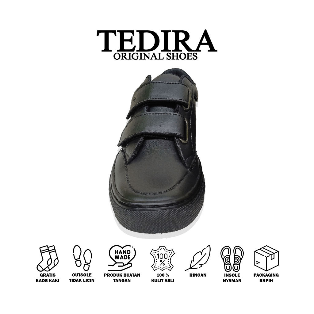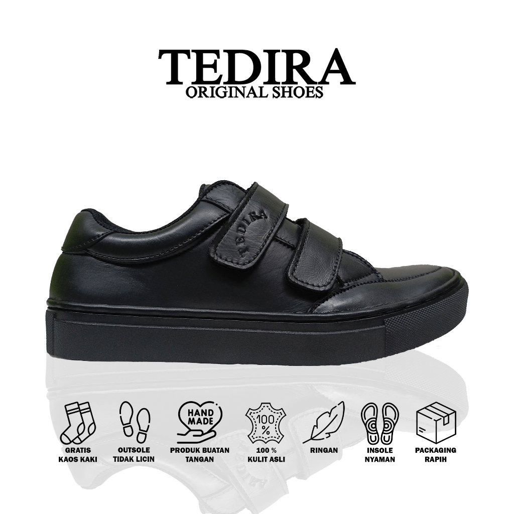 TEDIRA Original Sepatu Sneakers Velcro Kulit Asli Hitam Full Black TDR05