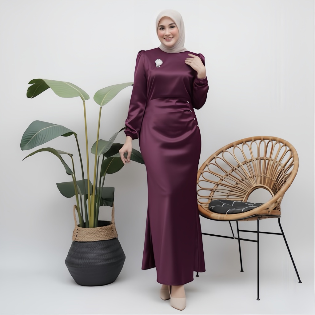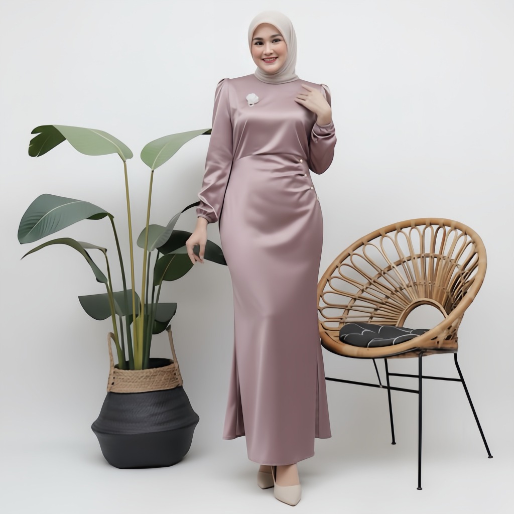 Elora Dress Satin Silk Premium Baju Fashion Wanita Kondangan Wisuda Gamis Terbaru