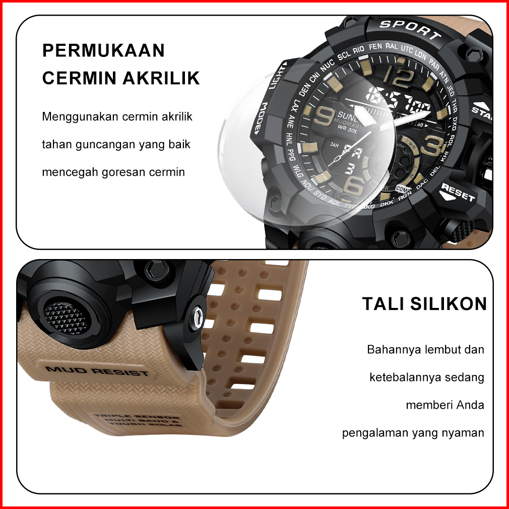Jam Tangan Pria Anti Air Digital Analog Original Olahraga Bercahaya Kalender Klasik Tali Silikon Multifungsi Jam Tangan