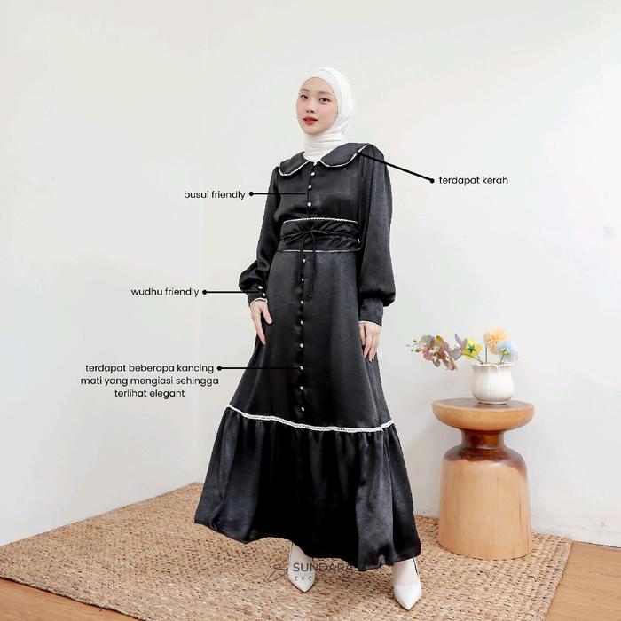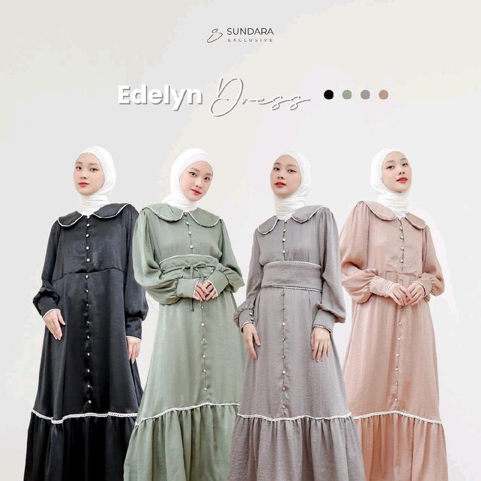 DP 0 EDELYN DRESS BY SUNDARA DRESS VINTAGE DAN KOREAN LOOK CANTIK FORMAL MEWAH GAMIS KONDANGAN PESTA BLACK XS