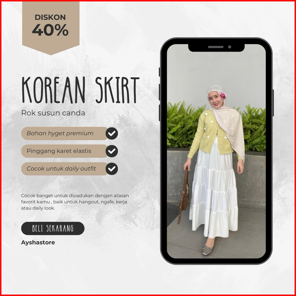 Rok Susun Canda Korean Style Rok Panjang Wanita Korean Skirt Kekinian