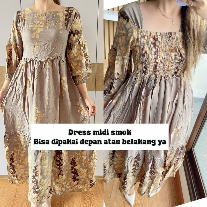 LONGDRESS MIDI PREMIUM BANYAK MOTIF/PREMIUM MODEL SMOK