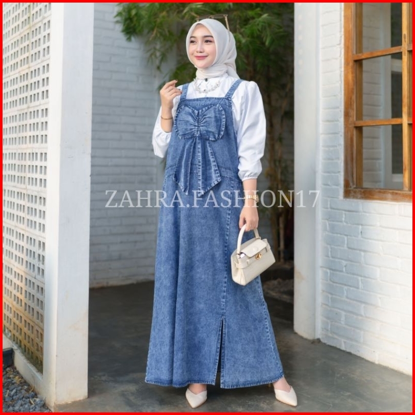 Zahra Overall Set Jeans Wanita Dan Remaja Terbaru Viral Model Kekinian Cantik Nyaman Soft Denim