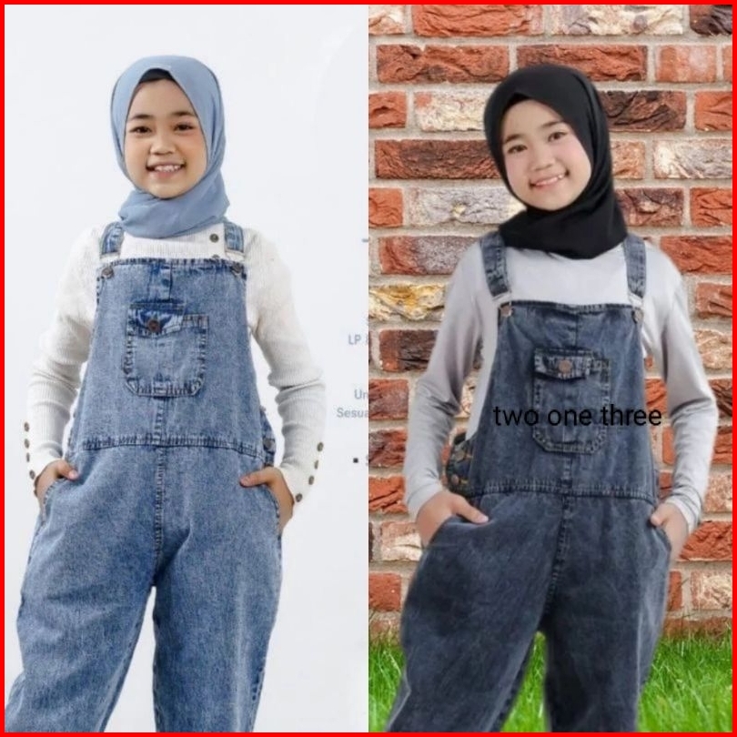 Overall Anak Perempuan Usia 2-13 Tahun Jumpsuit Celana Kodok Jeans