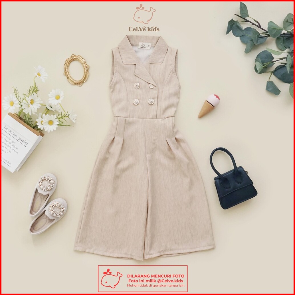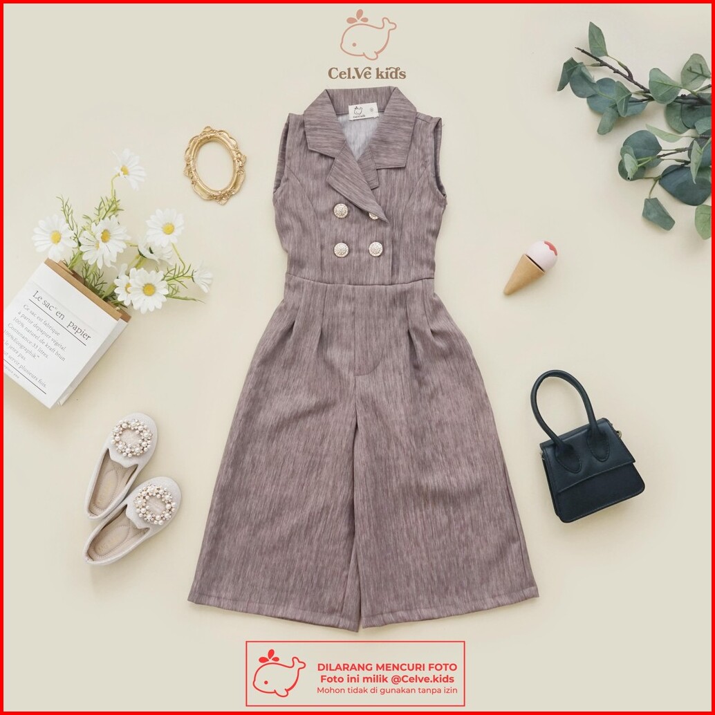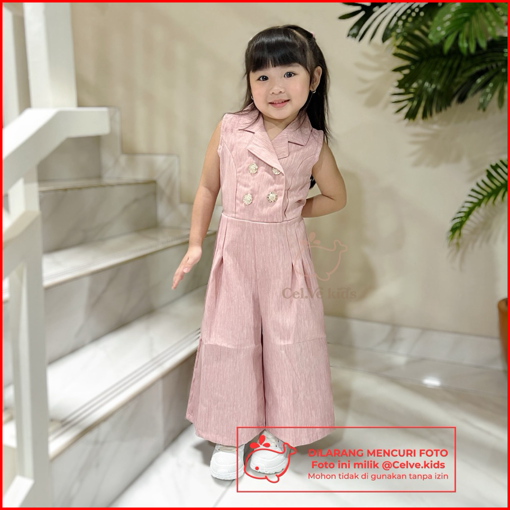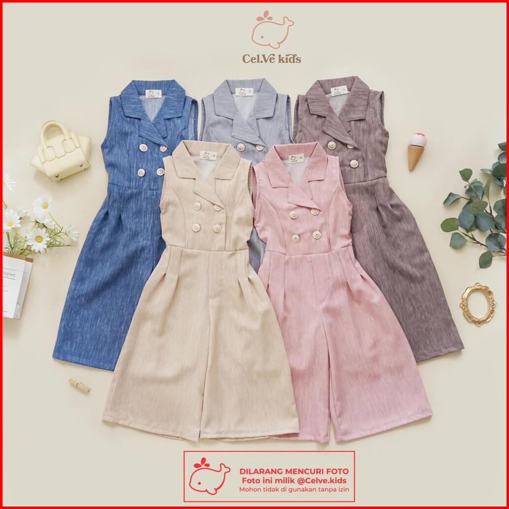 Celvekids - Jumpsuit Kareen Baju Celana Anak Perempuan Korean Style Linen Premium Usia 1-8th