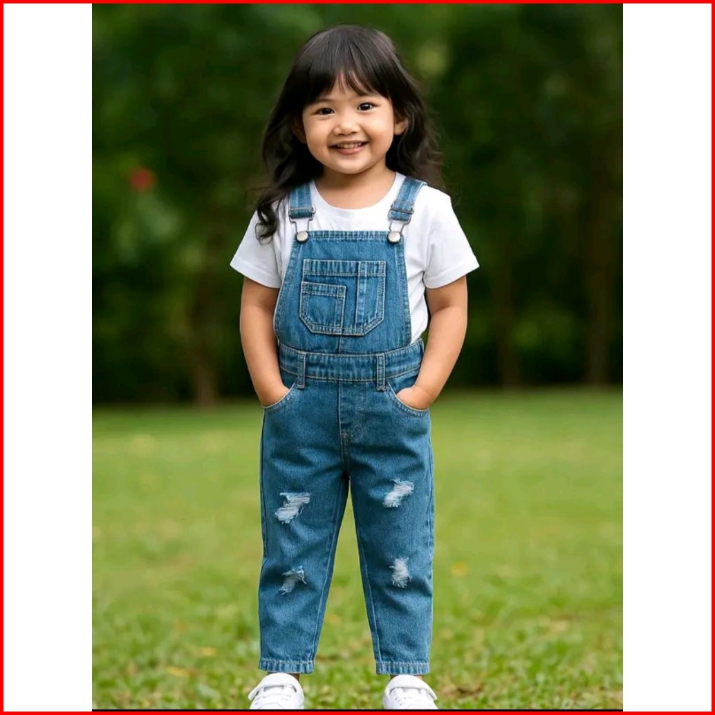 Overall Celana Jeans Anak Jumpsuit Kodok Laki-laki Perempuan Unisexs 2-7 Tahun