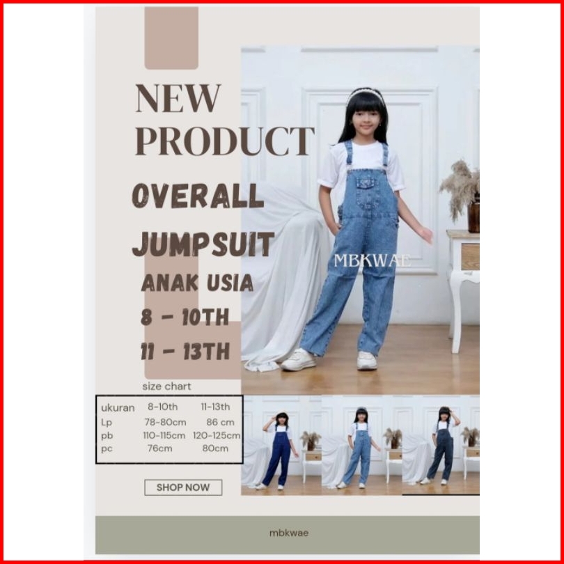 Overall Jumpsuit Jeans Anak Usia 2-13 Tahun Wanita Celana Kodok Jeans Kekinian Terbaru