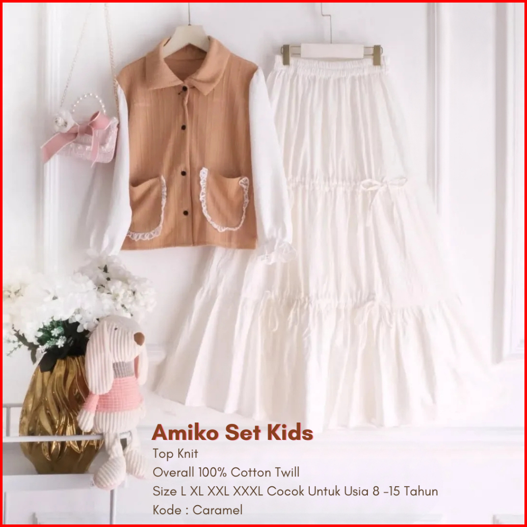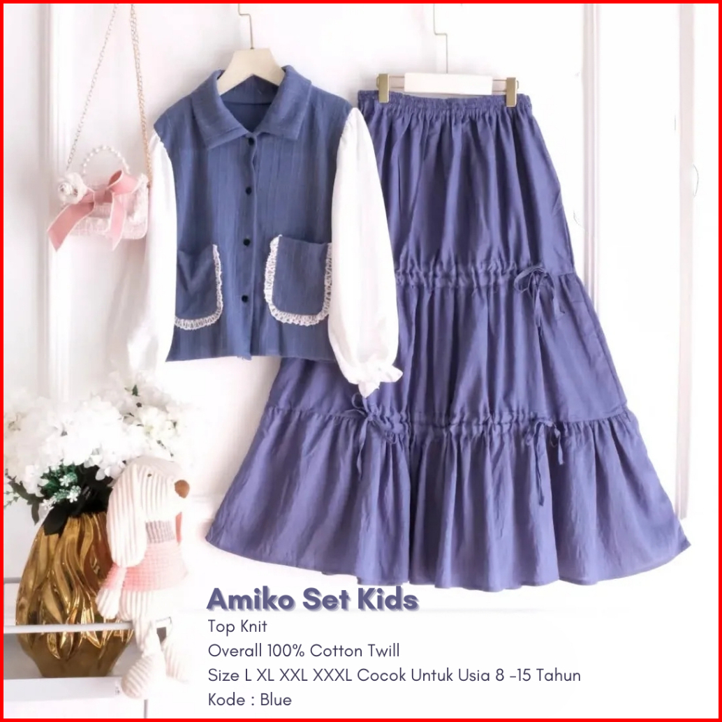 Amiko Set Kids 7thn-15thn Rok Serut Katun Twill One Set Rok Anak Remaja Setelan Anak Baju Knit Import Kekinian One Set R