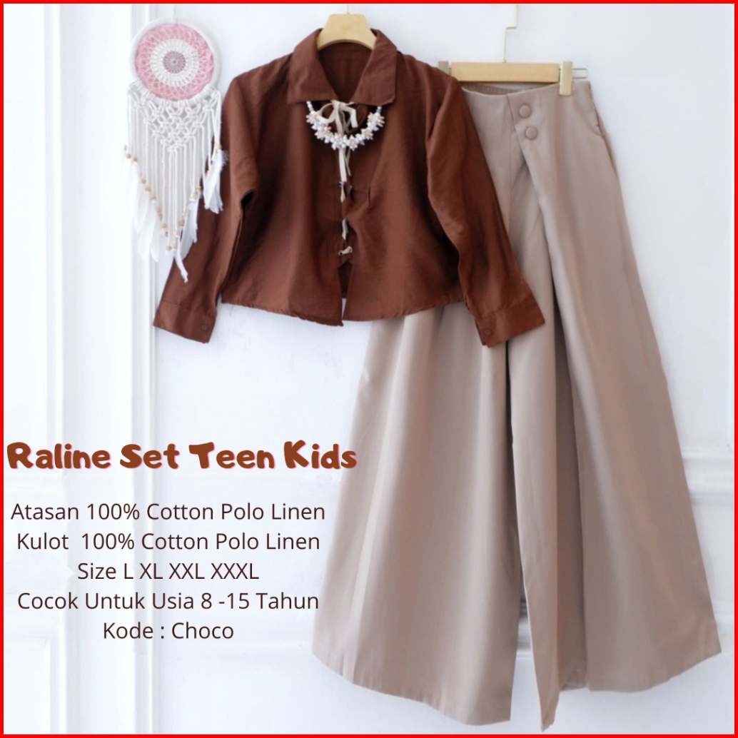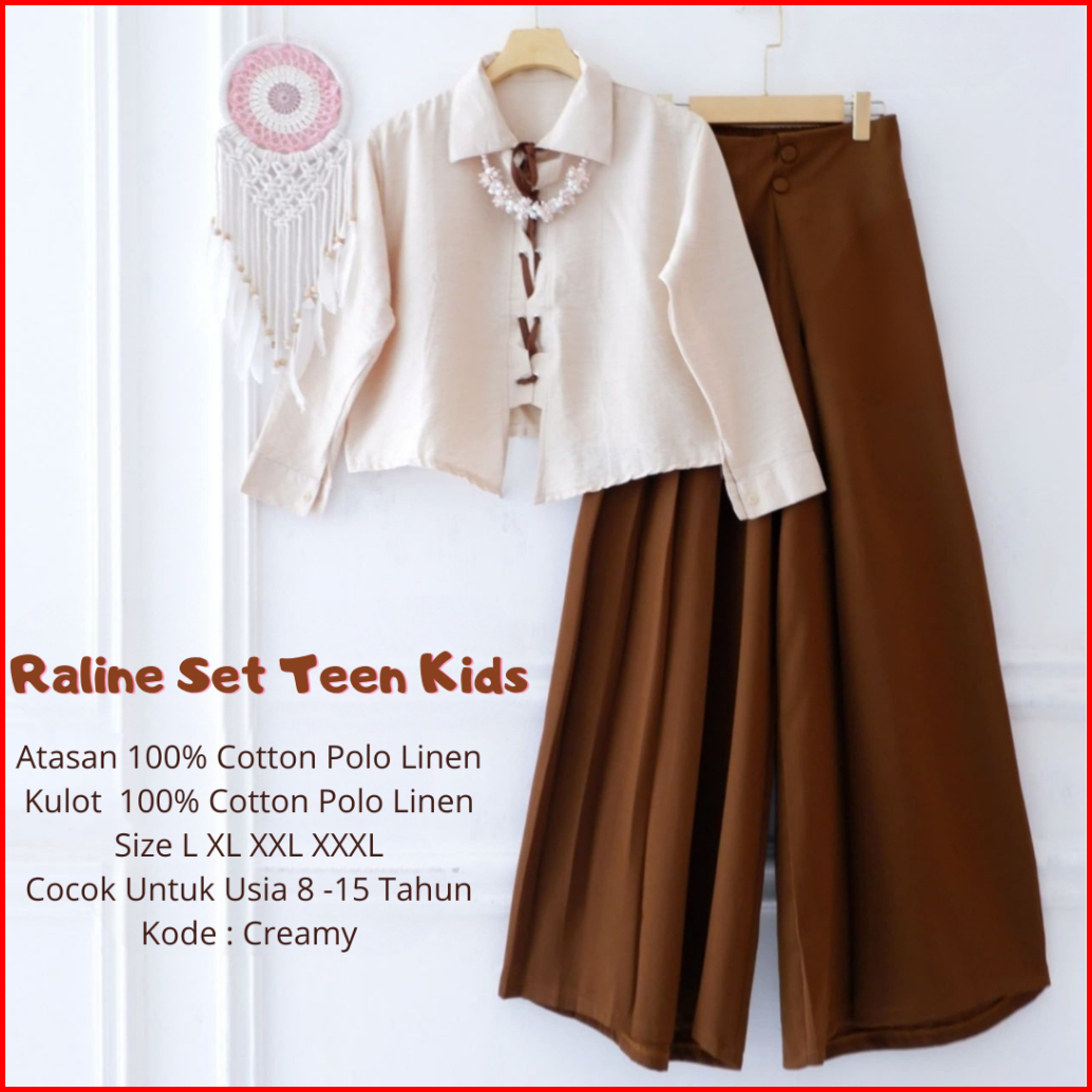 Raline Set Teen Kids - Setelan Anak Perempuan Remaja Tanggung - Setelan Linen Dan Celana Kulot Terbaru Original Kualitas