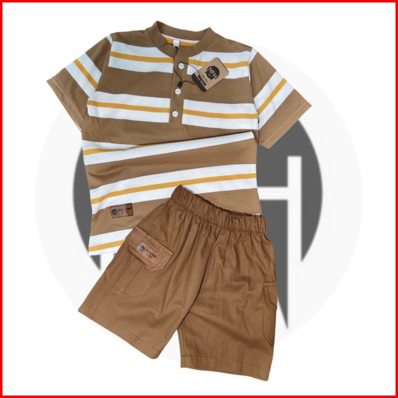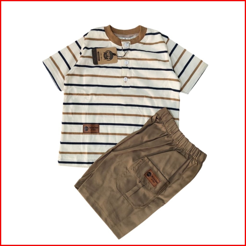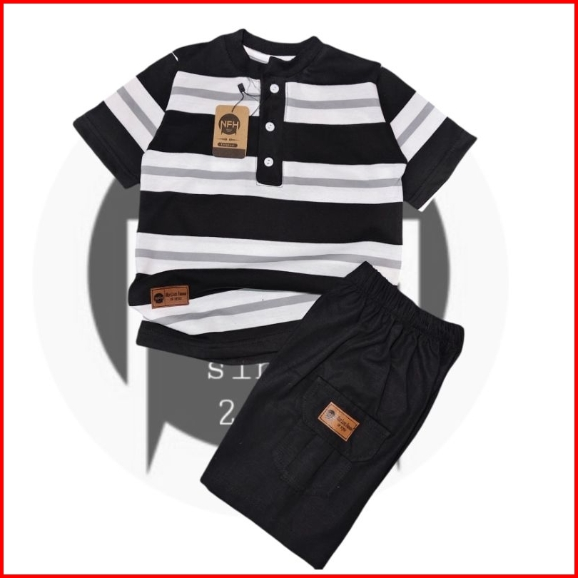 Broadstripe Setelan Kaos Motif Salur Bahan Combed 24s Premium 1-8 Tahun