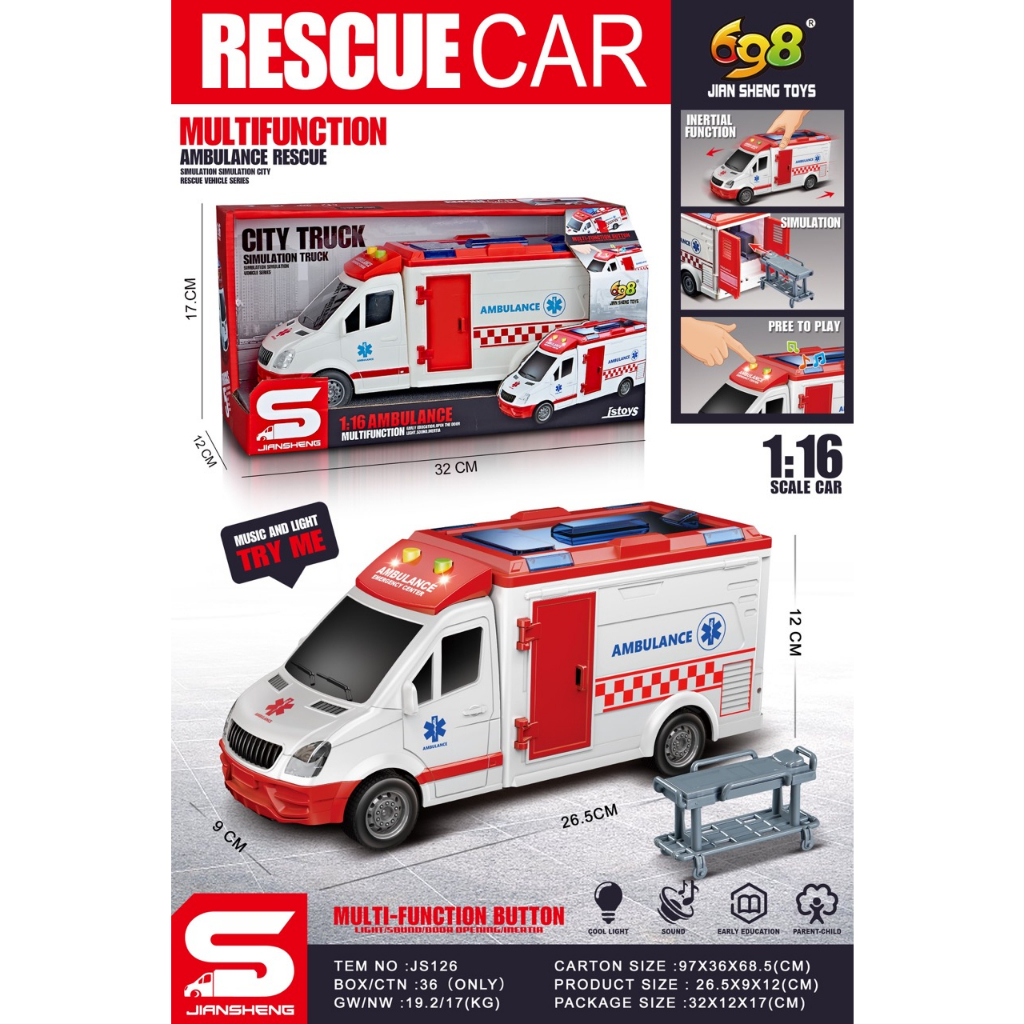 Mainan Anak Mobil Rescue Car Racing Police Bus Helikopter Ambulance 1:16 Diecast Koleksi Mewah