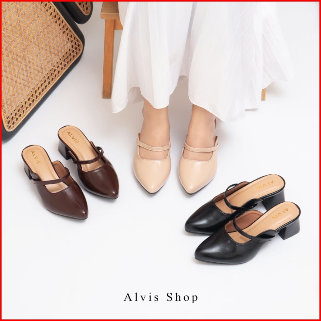 Alvis Icha Sepatu Selop Tali Tengah Tinggih Hak 5 Cm