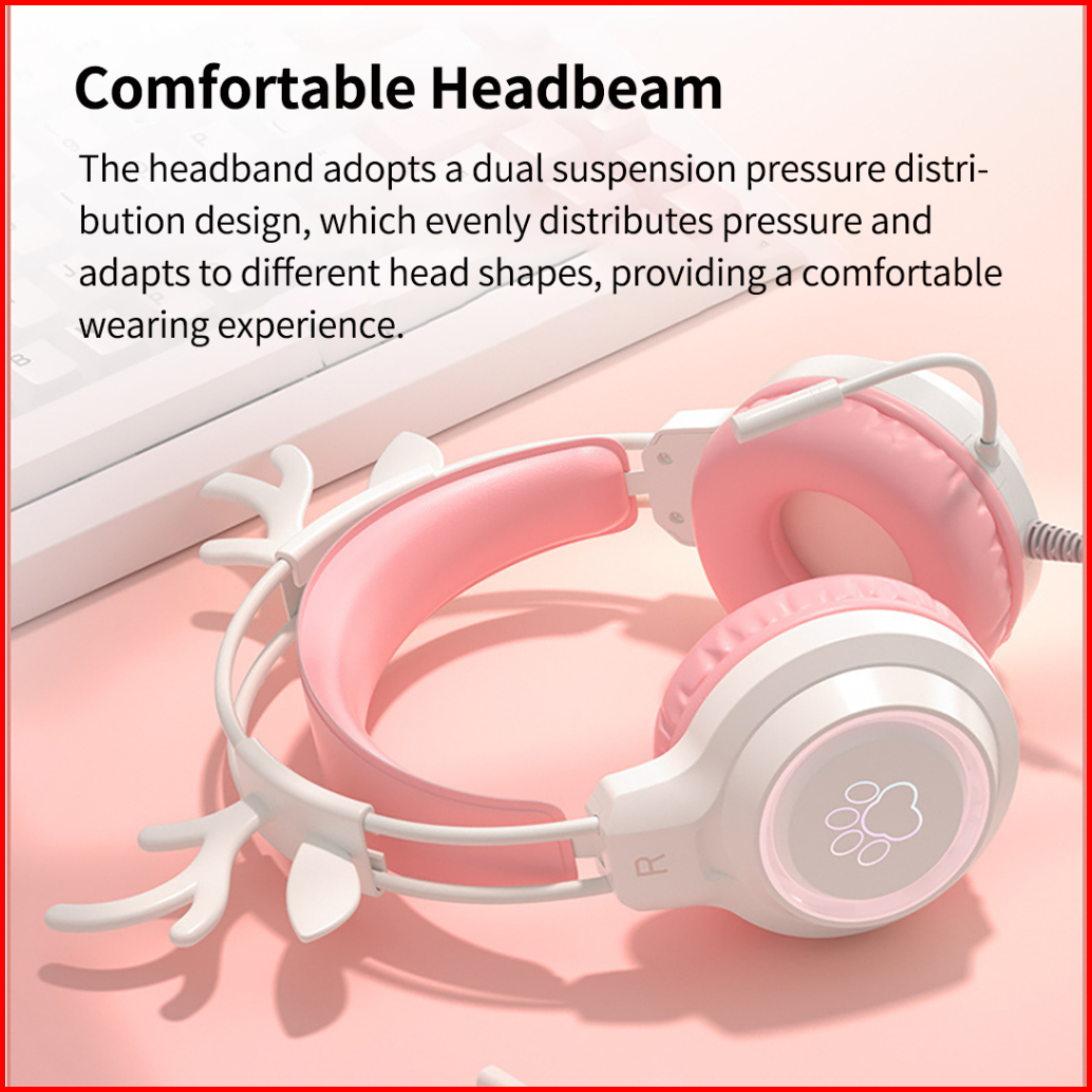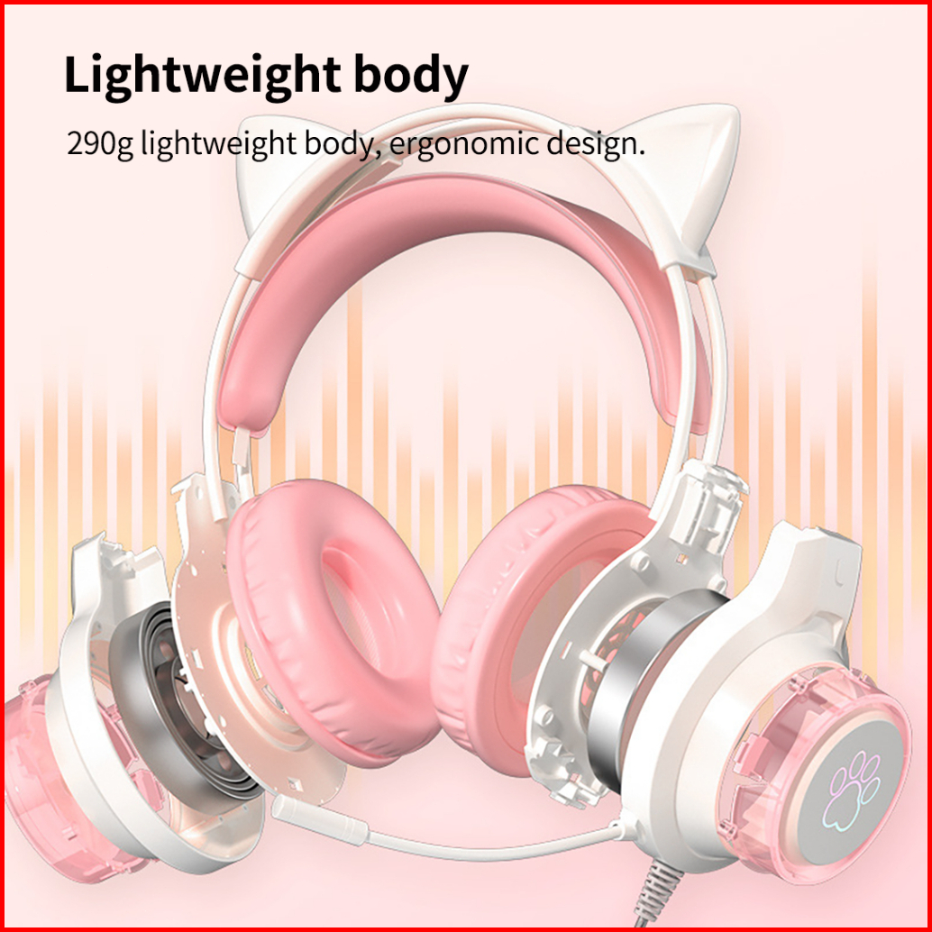 Gaming Headset G35 Lucu Headphone Kucing Led Jack 3.5mm Rgb Cahaya Hd Mikrofon Peredam Bising Pc Ps5