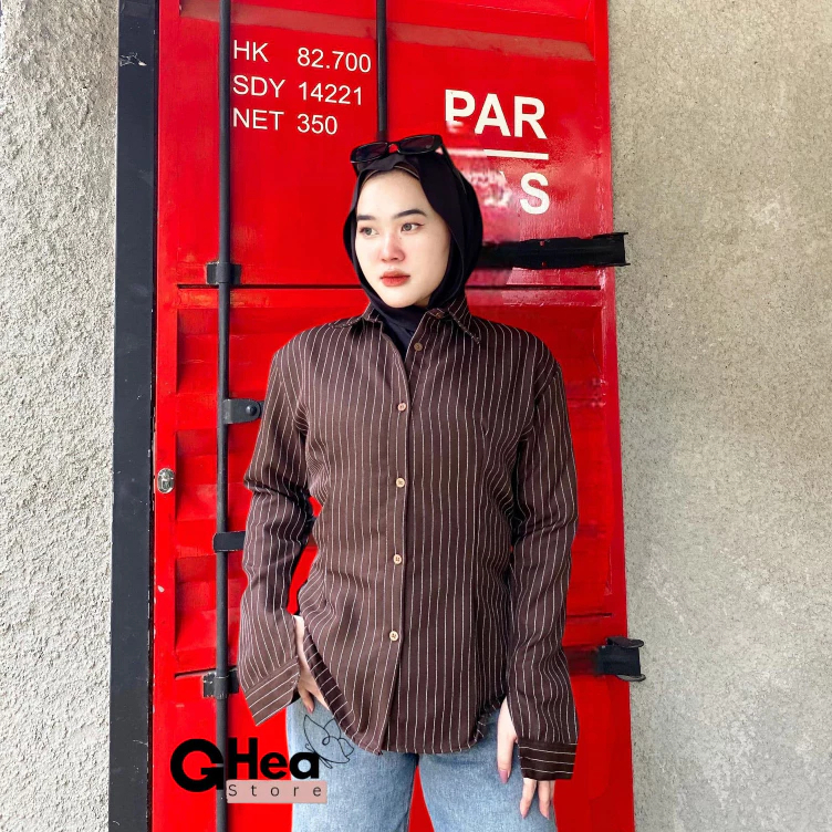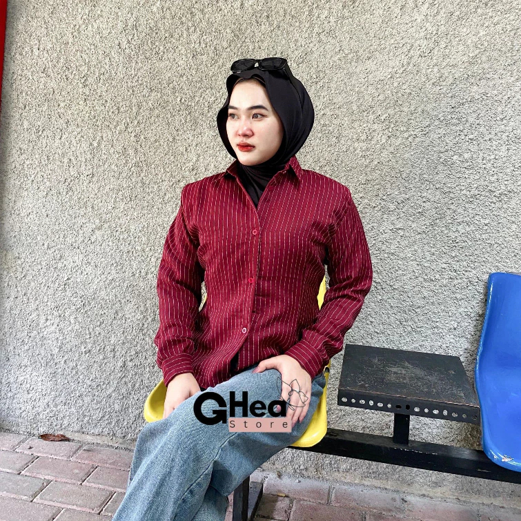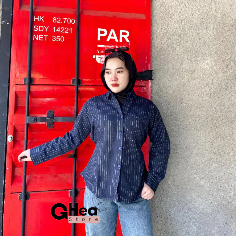 Atasan Wanita Kekinian Luna Stripe Fitted Basic Casual Series Premium Kemeja Wanita Salur Lengan Panjang Best Seller