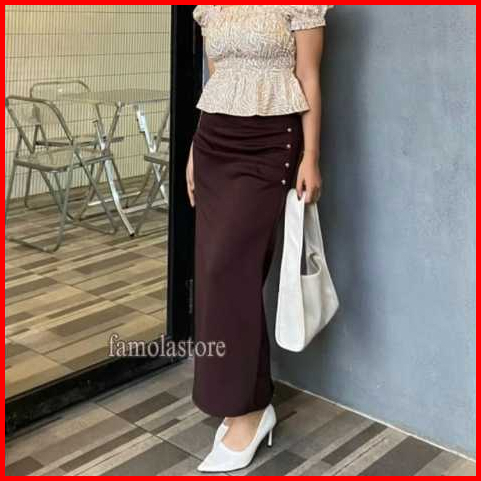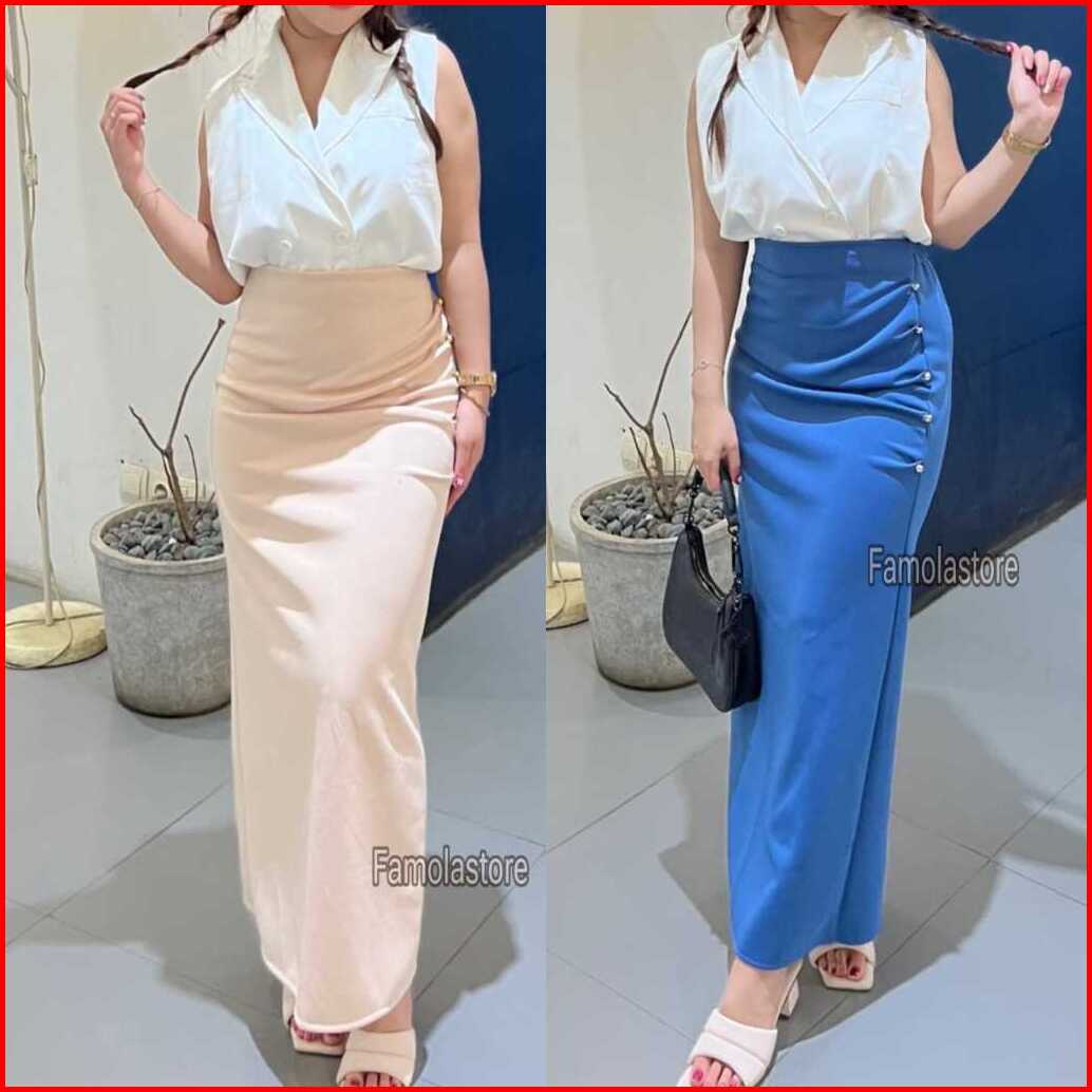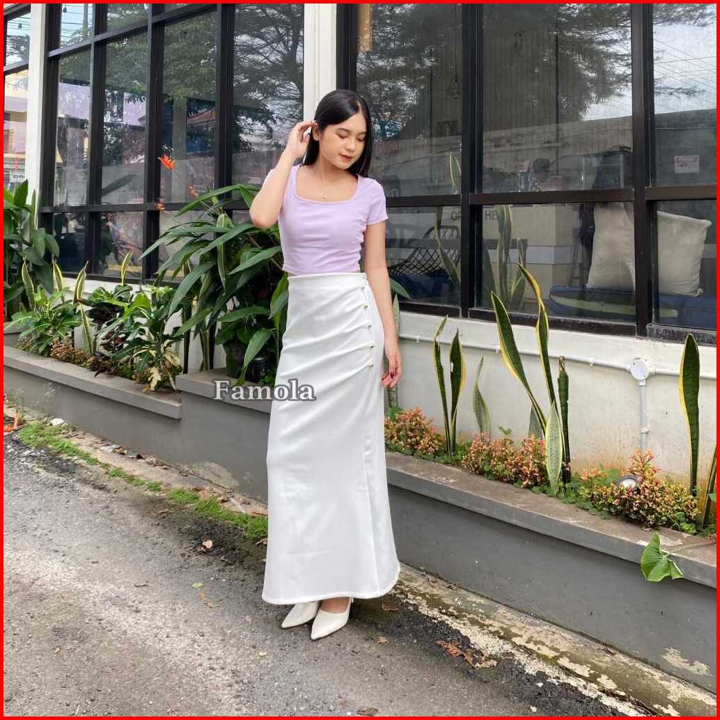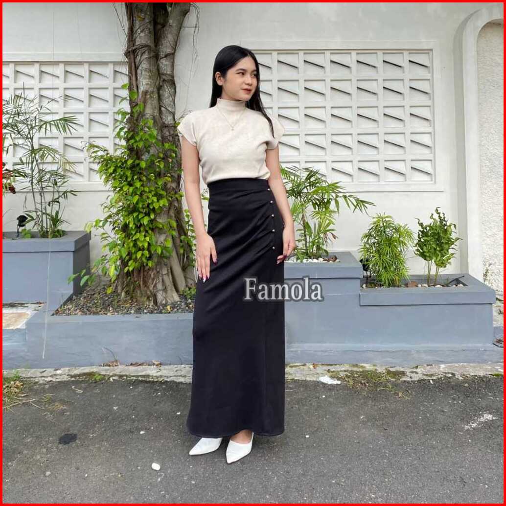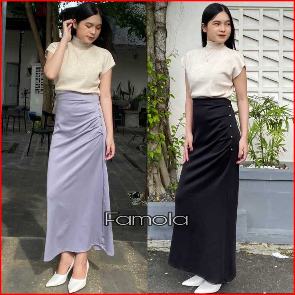 Famola - Jillow Skirt Rok Span Wanita Anti Kusut - Korean Maxi Skirt Rok Flare Scuba Premium - Maxi Skirt Rok Panjang