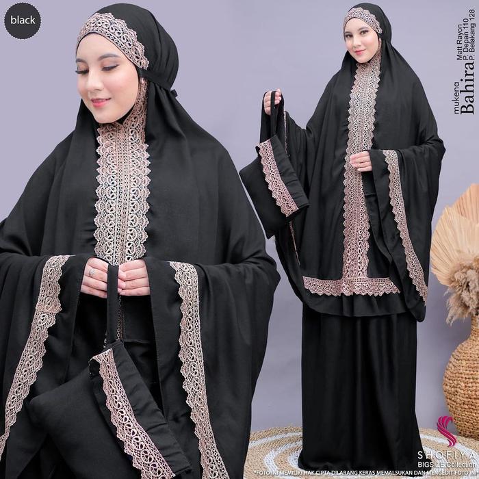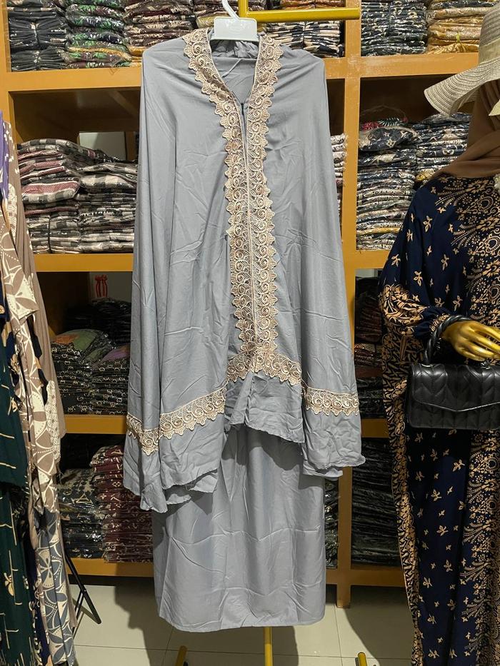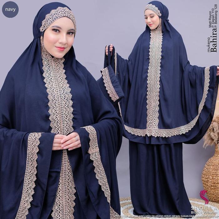 DP 0 MUKENA RENDA POLOS BAHIRA FREE TASS MUSLIM WANITA NAVY