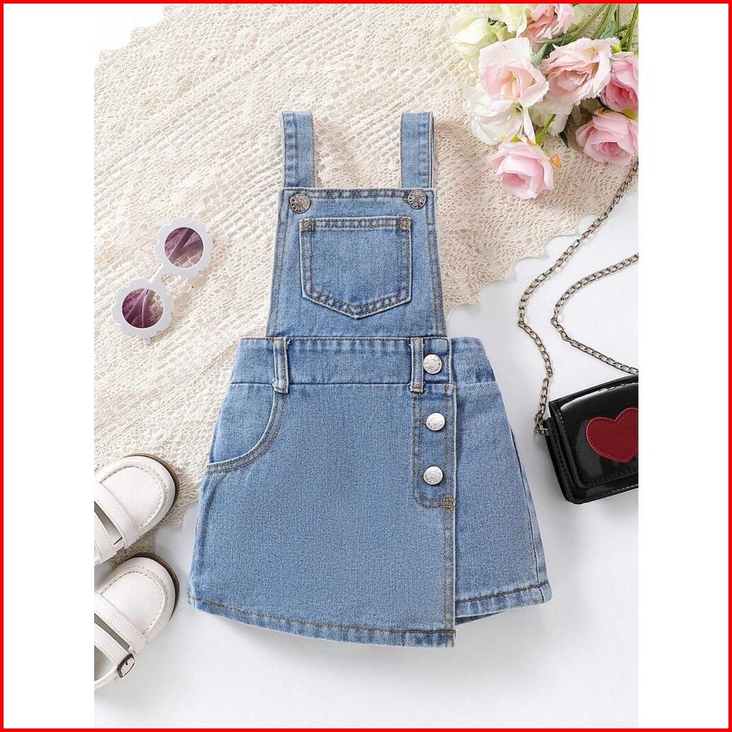 Overall Rok Pendek Jeans Anak Perempuan 1-7 Tahun - Jumpsuit Romper Denim Model Rok Celana Terbaru