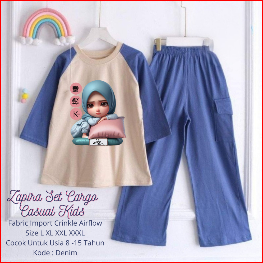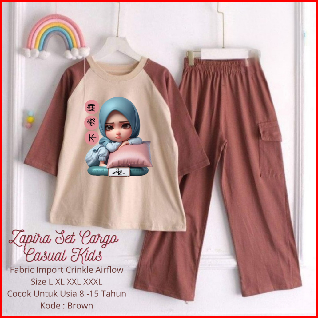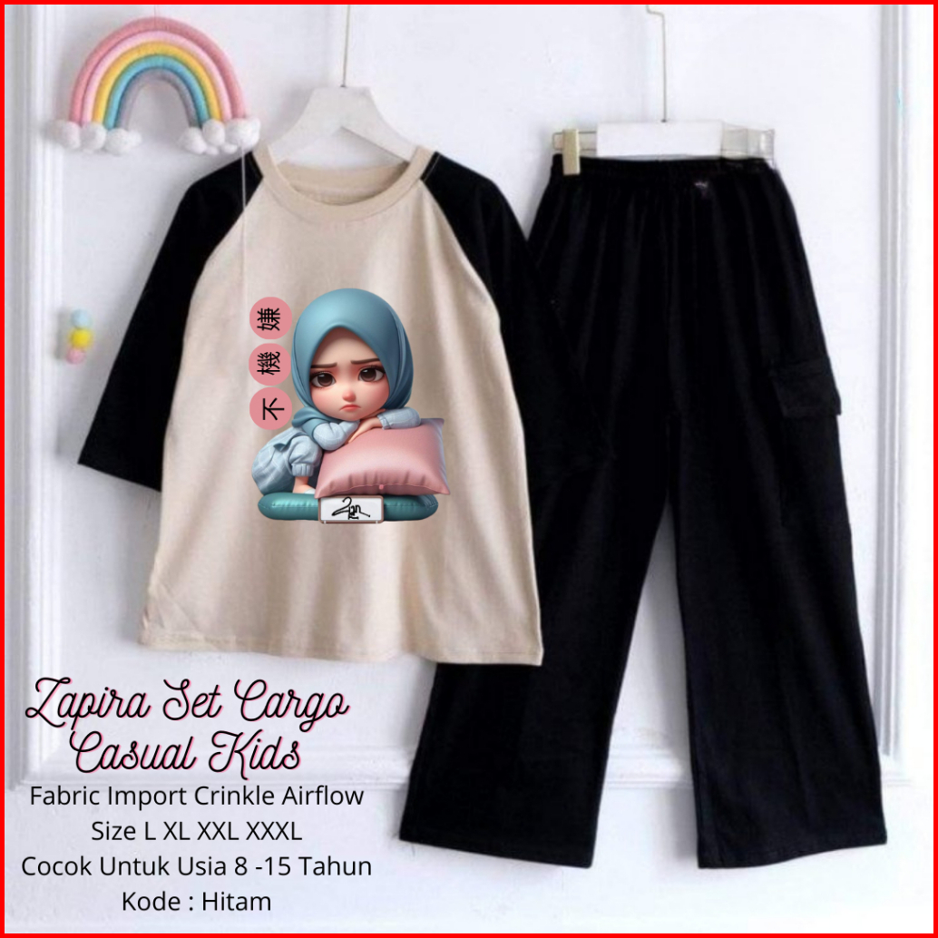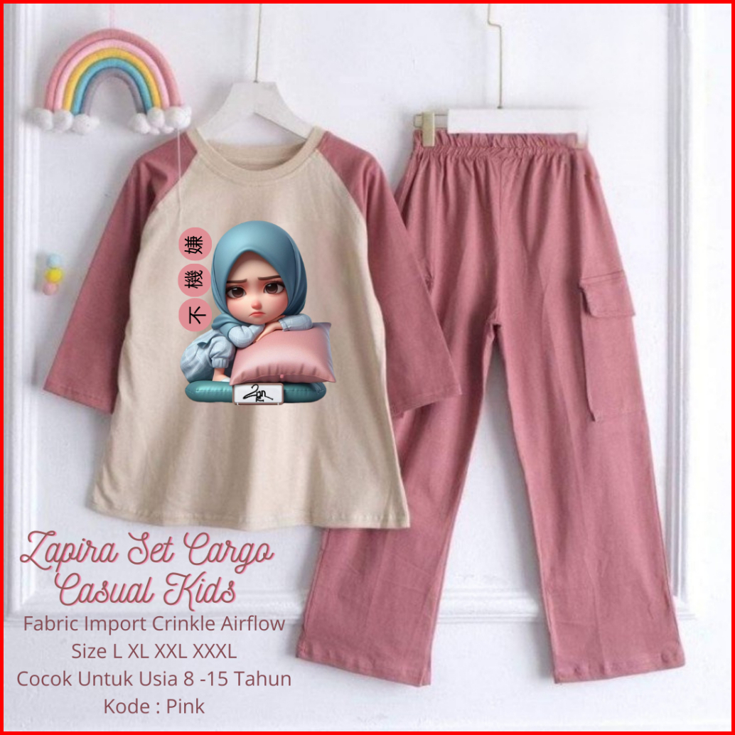Setcel Baju Anak Perempuan Lengan Panjang Celana Cargo Motif Islami Lucu - Setelan Anak Perempuan Muslim Bahan Airflow C