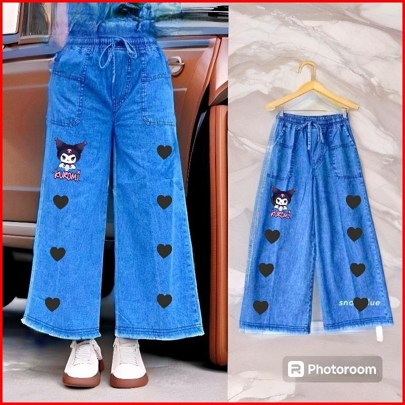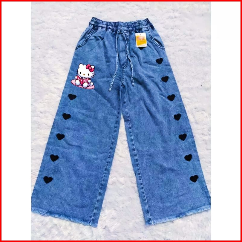 Kulot Jeans Anak Terbaru Sablon Kuromi Hello Kitty Love Usia 6-17 Thn