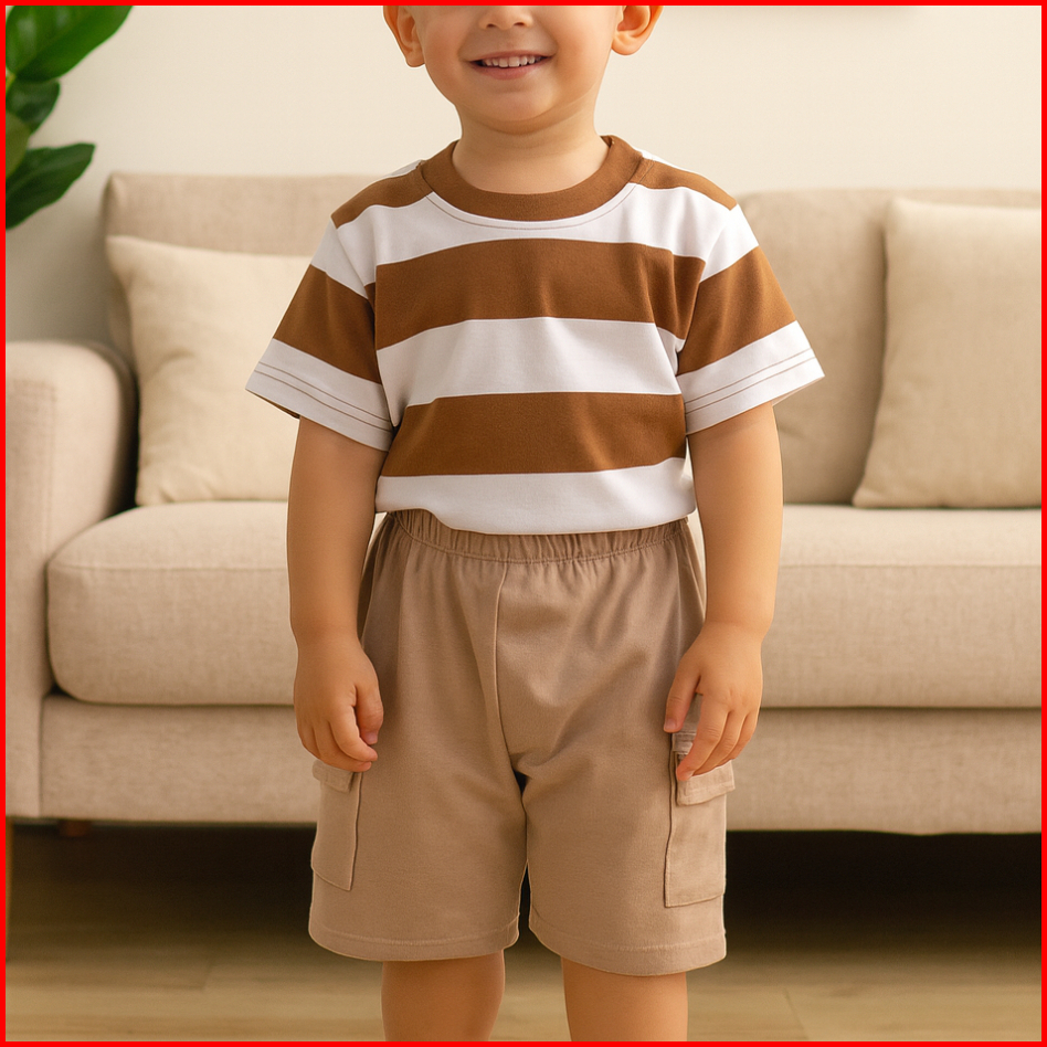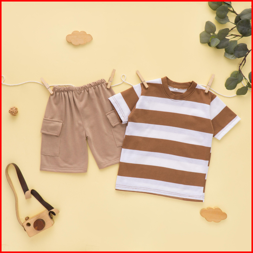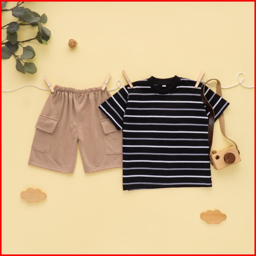 Setelan Anak Kaos Salur Celana Cargo Usia 1-5 Tahun