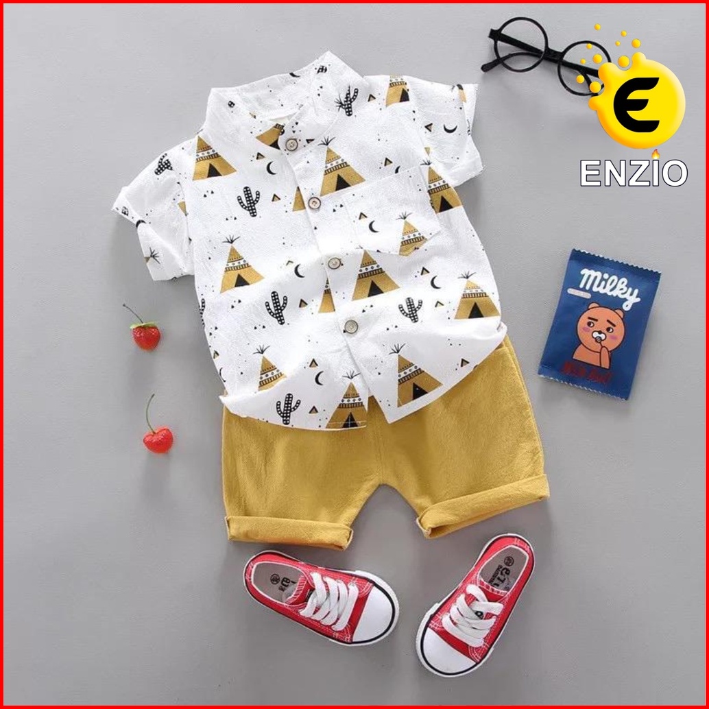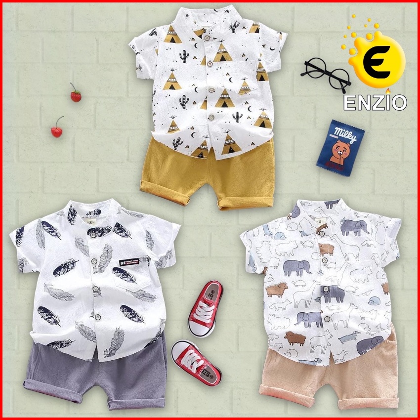 Sale 10.10 Setelan Kemeja Anak Cowok 1-4 Tahun Enzio Baju Berkuaitas