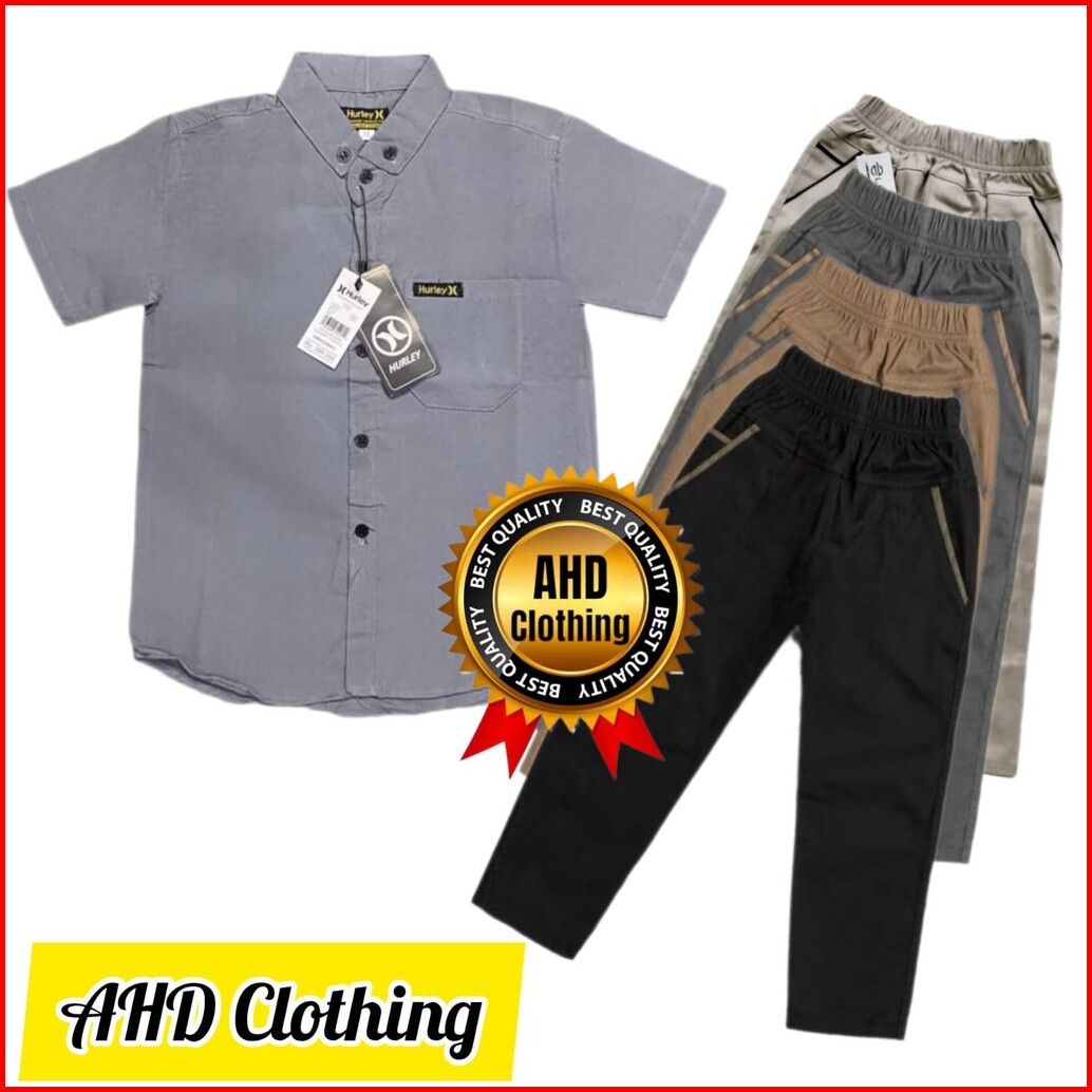Setelan Kemeja Abu Abu Muda Anak Laki Laki Usia 1-13 Tahun Setelan Kemeja Lengan Pendek Celana Panjang Chinos Anak Laki
