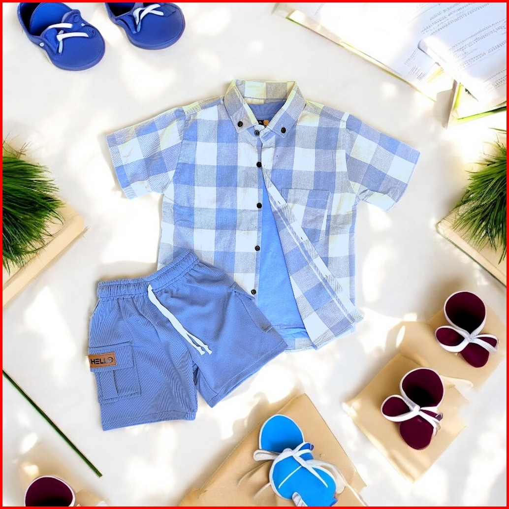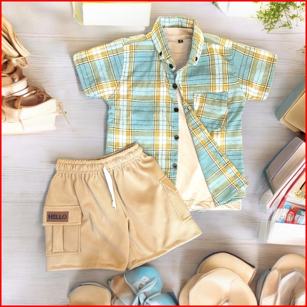 Setelan Anak Laki Laki Usia 1-6 Tahun Kemeja Flanel Lengan Pendek Hanya Kemeja Dan Celana