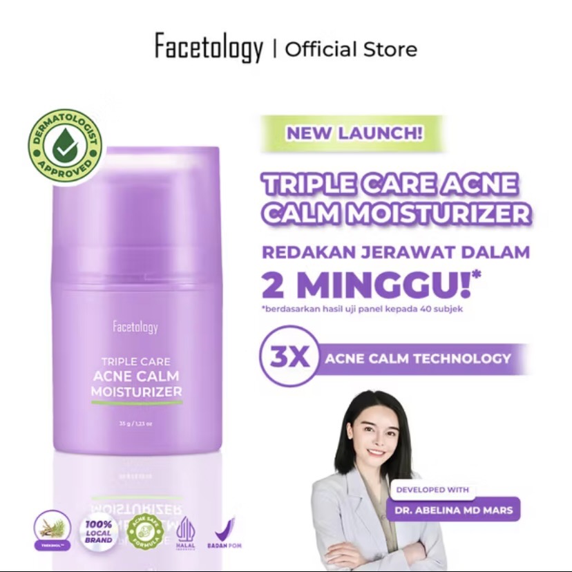 Facetology Triple Care Acne Calm Moisturizer 35 gr Meredakan Jerawat Dalam 2 Minggu