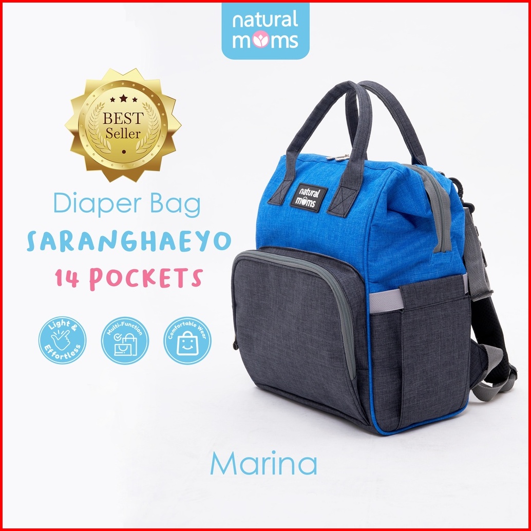 Tas Bayi Multifungsi Diaper Bag Natural Moms Saranghaeyo 14 Pockets