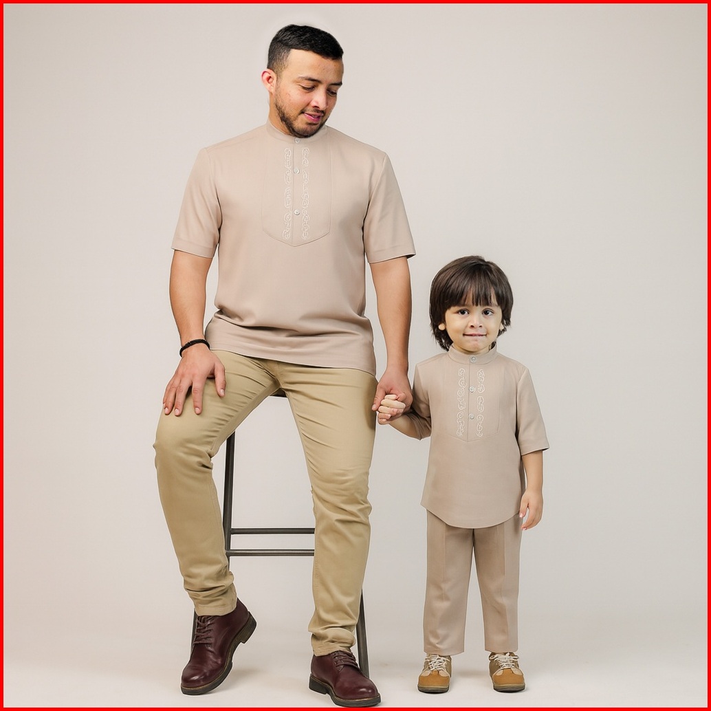 Hellomini 2-13t Ameer Raya Koko Kembar Ayah Anak Katun Bordir Baju Koko Anak Lengan Pendek Hmn21