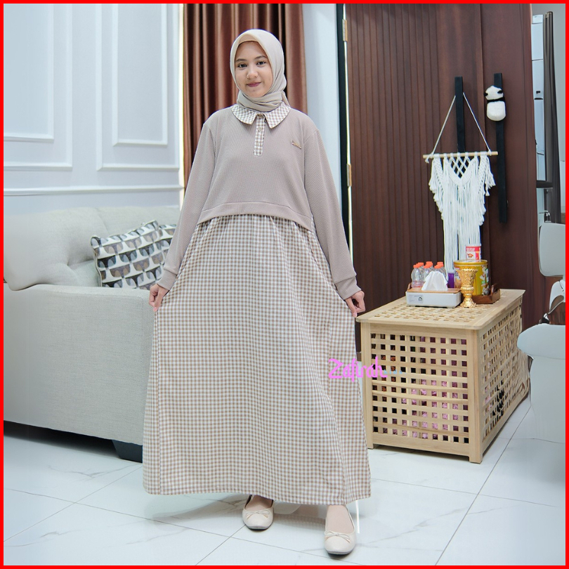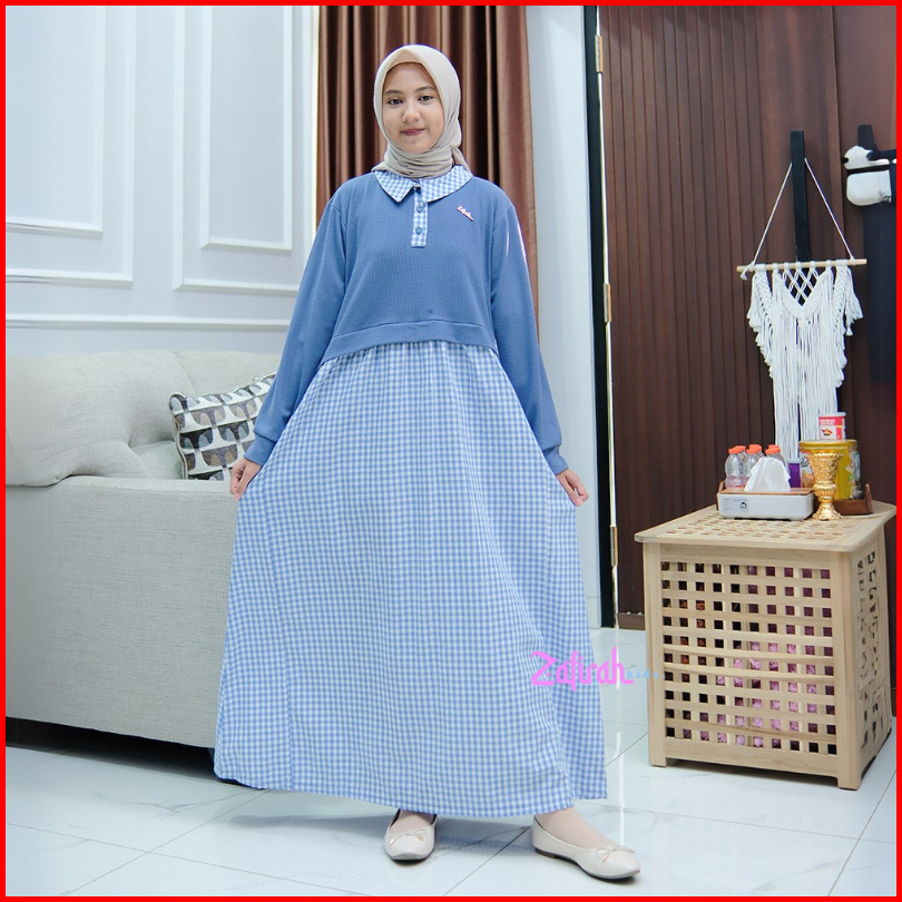Gamis Anak Perempuan Raina Dress Motif Kotak Baju Muslim Anak Tanggung Kekinian Zafirah Kids
