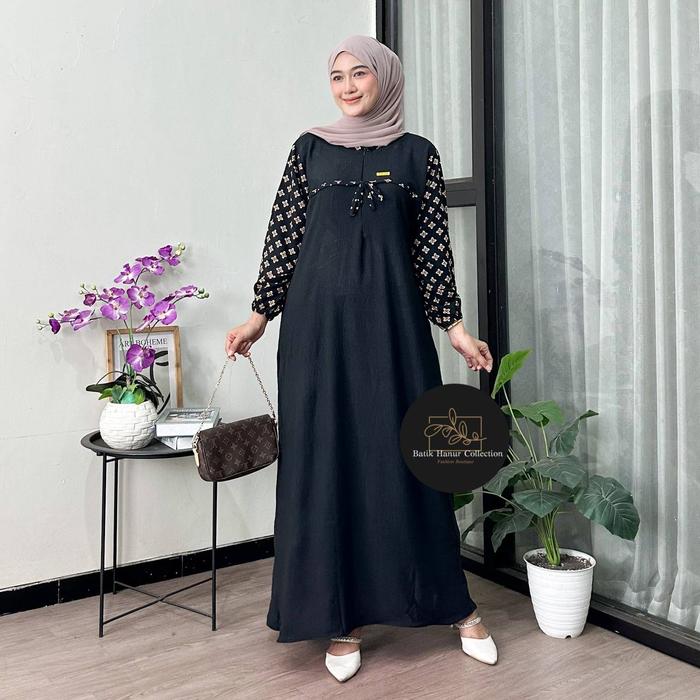 DP 0 GAMIS MEISYA CRINGKLE AIRFLOW KOMBINASI RAYON SUPER ADEM HALUS TEBAL NYAMAN LD 120 PB 130 RESLETING DEPAN BUSUI FRIENDLY HITAM ALL SIZE