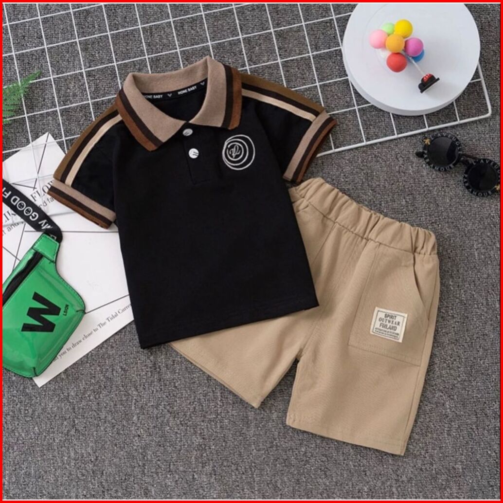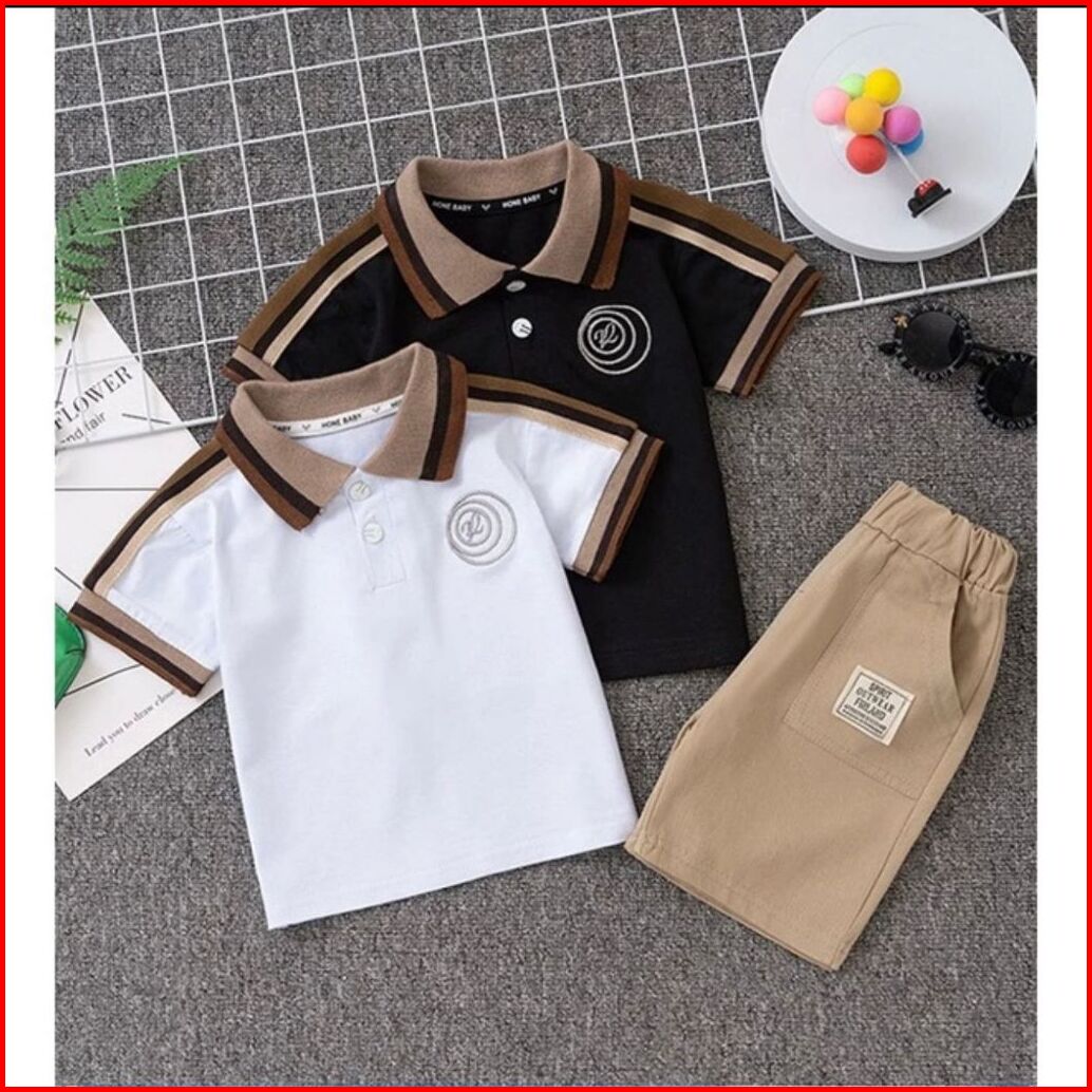 Set Polo Anak Laki-laki Usia 1-5 Tahun Motif Logo Bordir Setelan Baju Polo Dan Celana Pendek Anak