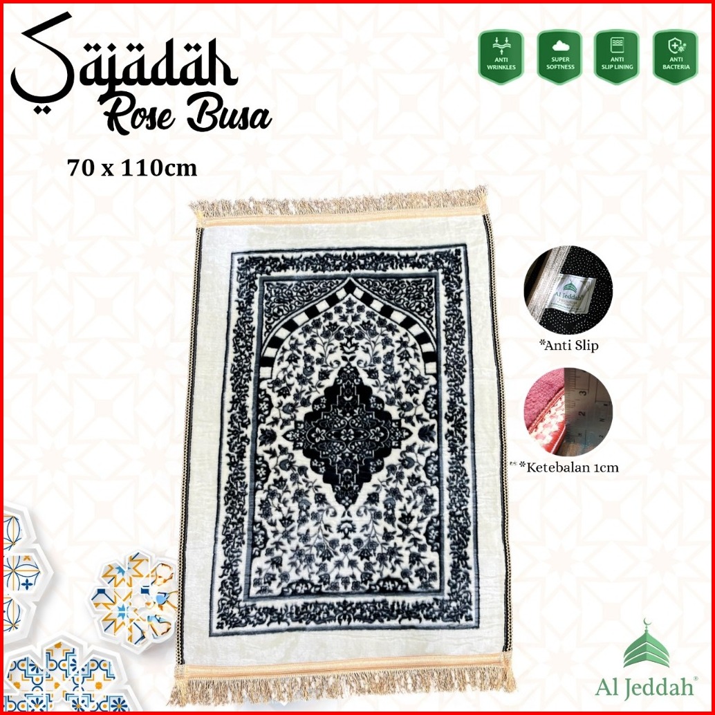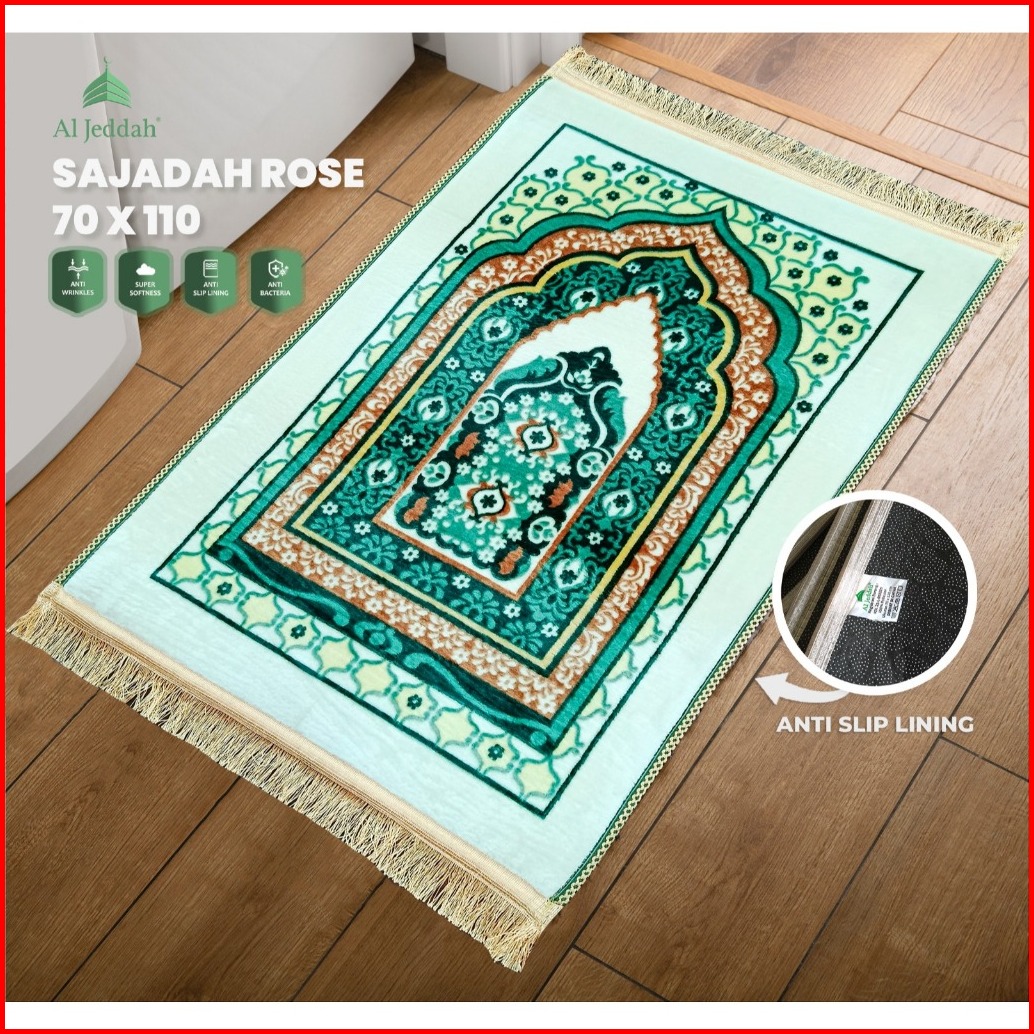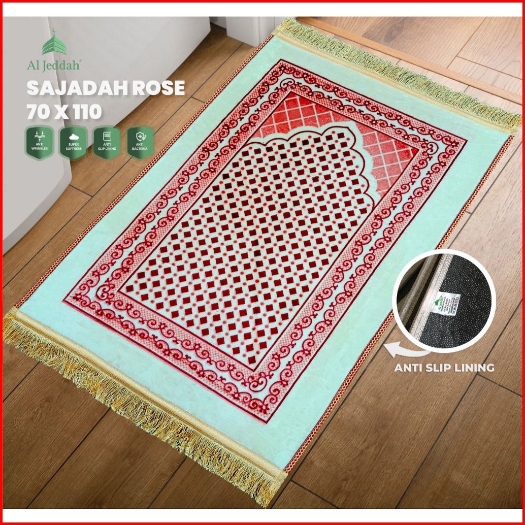 Al Jeddah Sajadah Turki Rumbai Premium 70x110 Sejadah Rose Tebal Anti Slip