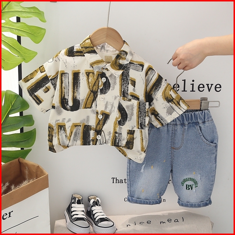 Kemeja Set Anak Laki-laki Atasan Dan Bawahan Kerah Polo Kasual Model Terbaru Usia 1-5tahun