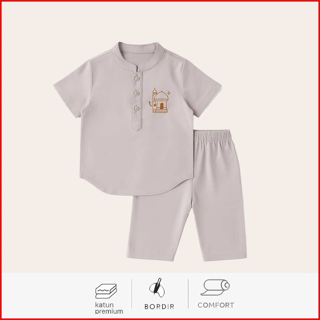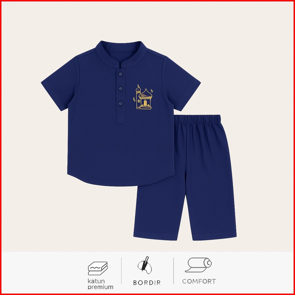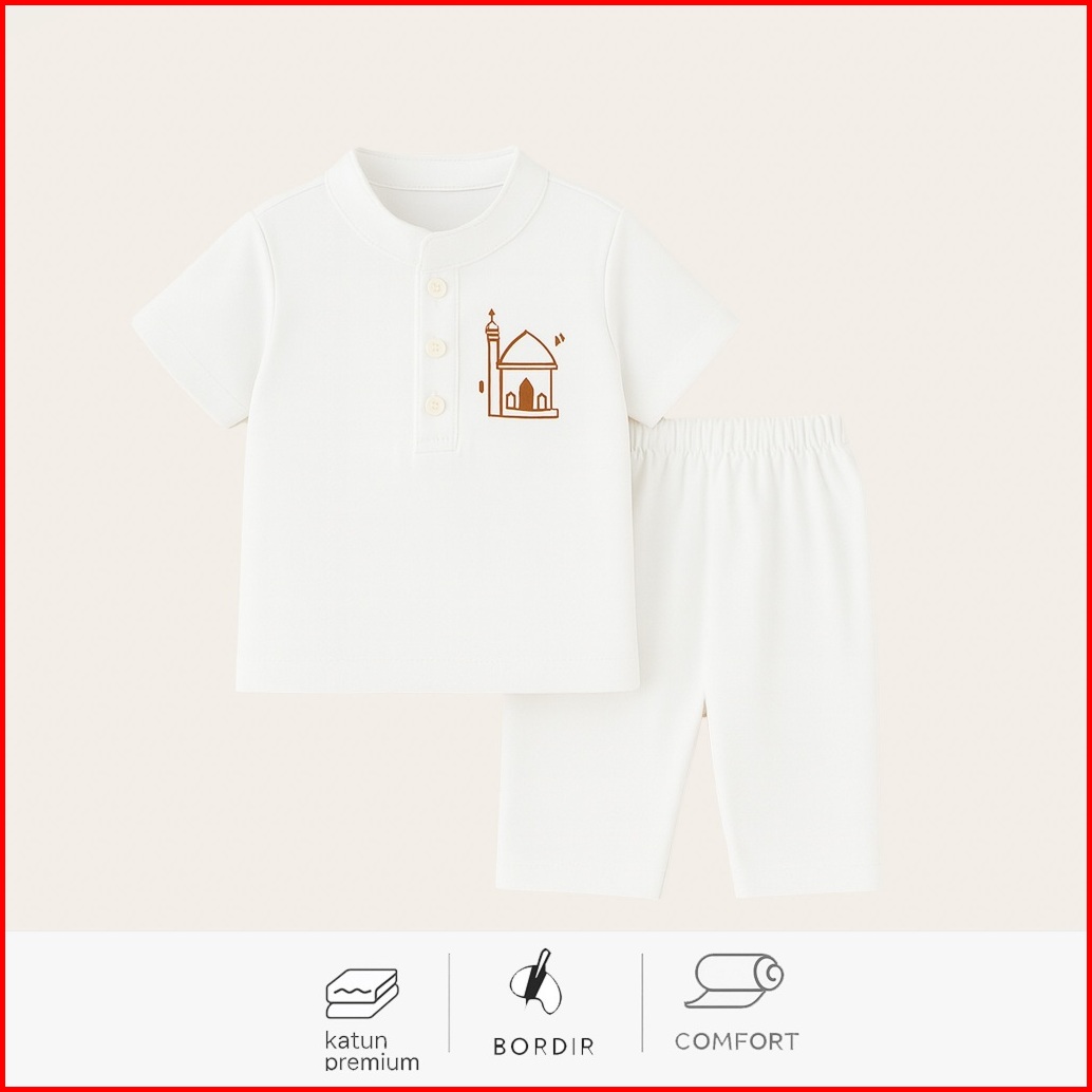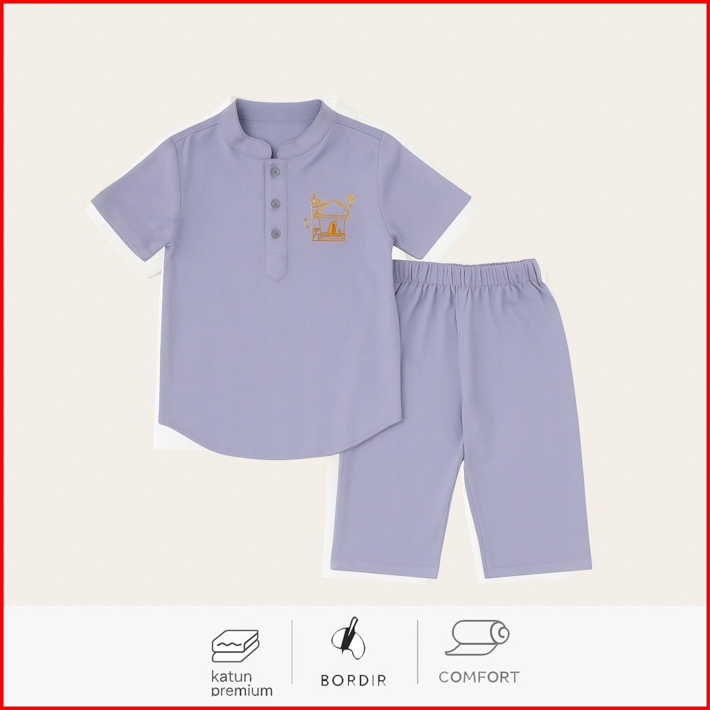 Hellomini 2-13t Jojo Koko Set Katun Anak Laki Laki Baju Lebaran 2025 Lengan Pendek Bordir Hmn1